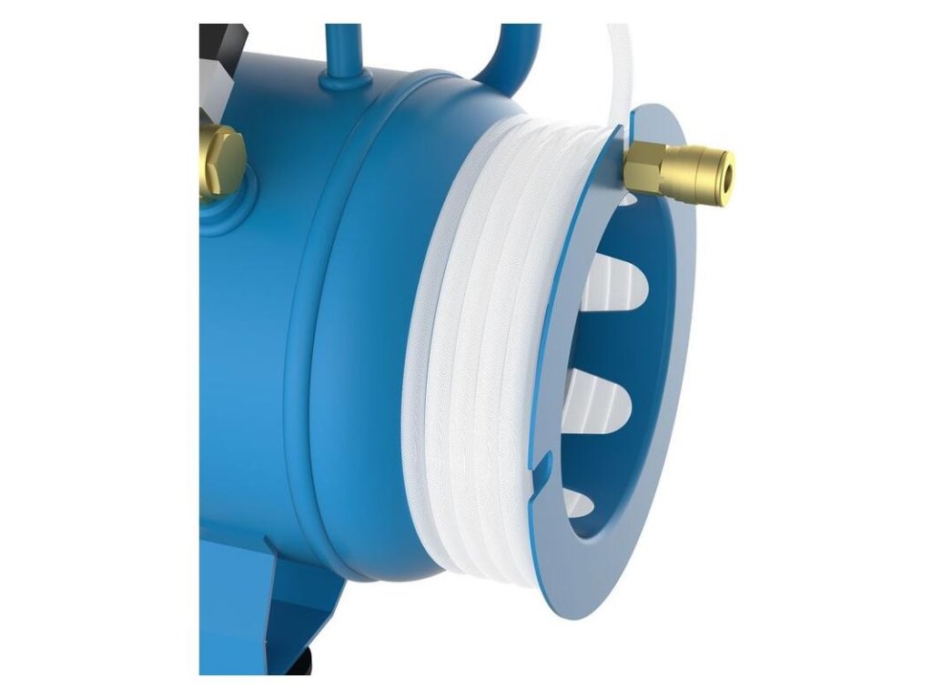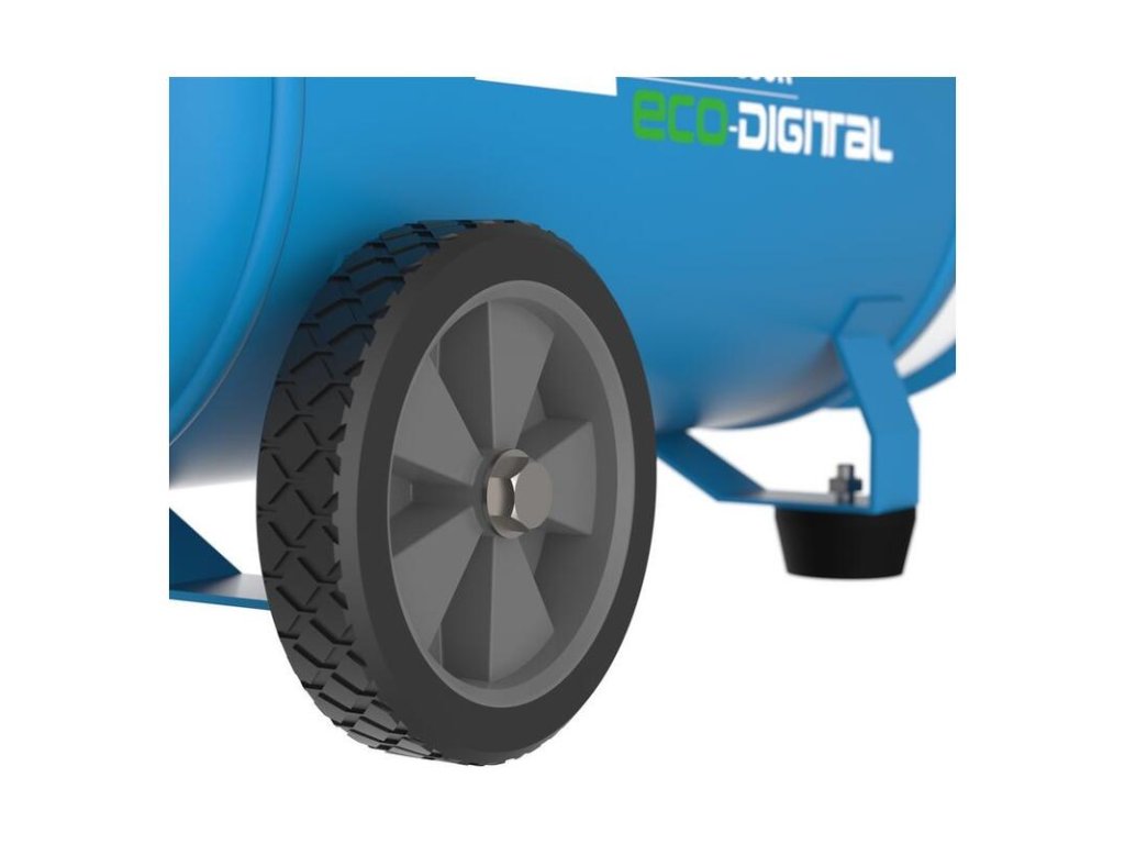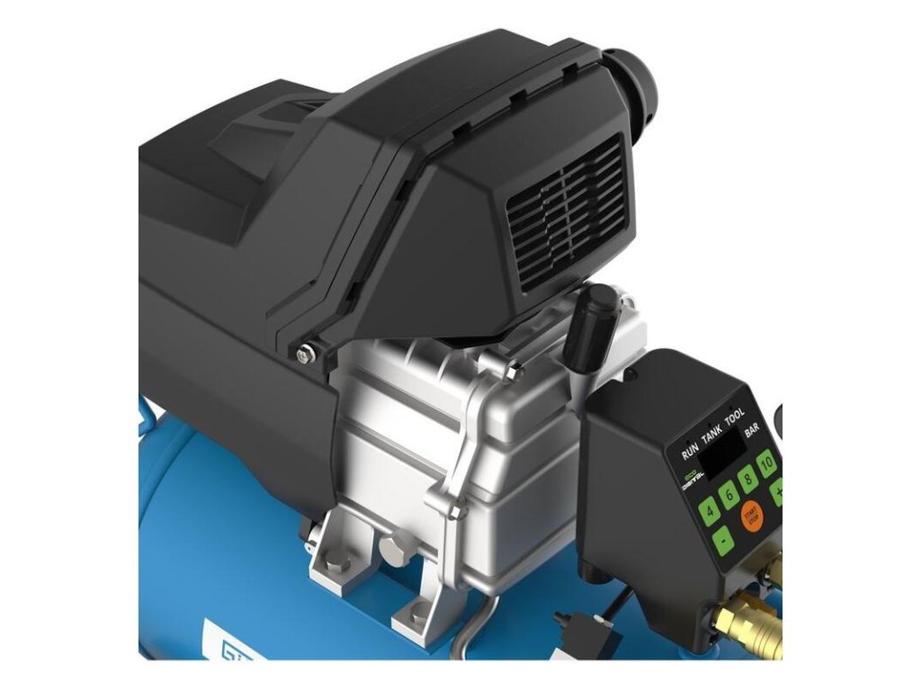Jednovalcový kompresor s olejovým mazaním, s priamym pohonom. Digitálny riadiaci displej, nastaviteľný pracovný a vypínací tlak, digitálny ukazovateľ tlaku, 2 spojky na stlačený vzduch, poistný ventil. Dvojitá noha s gumovým nárazníkom, plastové kolesá, prepravná rukoväť. Držiak hadice na nádobe, hadica na stlačený vzduch.