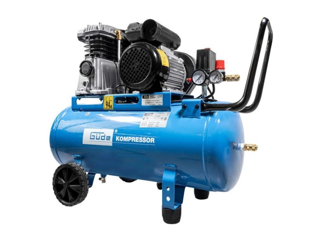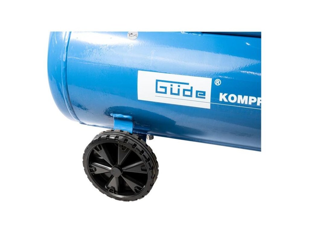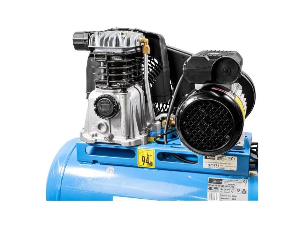 Dvojvalcový kompresor s olejovým mazaním, s remeňovým pohonom. Tlakový spínač, manometer tlaku v nádobe a manometer pracovného tlaku, 2 spojky na stlačený vzduch, redukčný ventil pracovného tlaku, poistný ventil, spätný ventil, vypúšťací ventil na kondenzát, vzduchový filter. Ochrana proti preťaženiu. Dvojitá noha s gumovým nárazníkom, plastové kolesá, prepravná rukoväť.