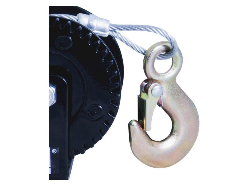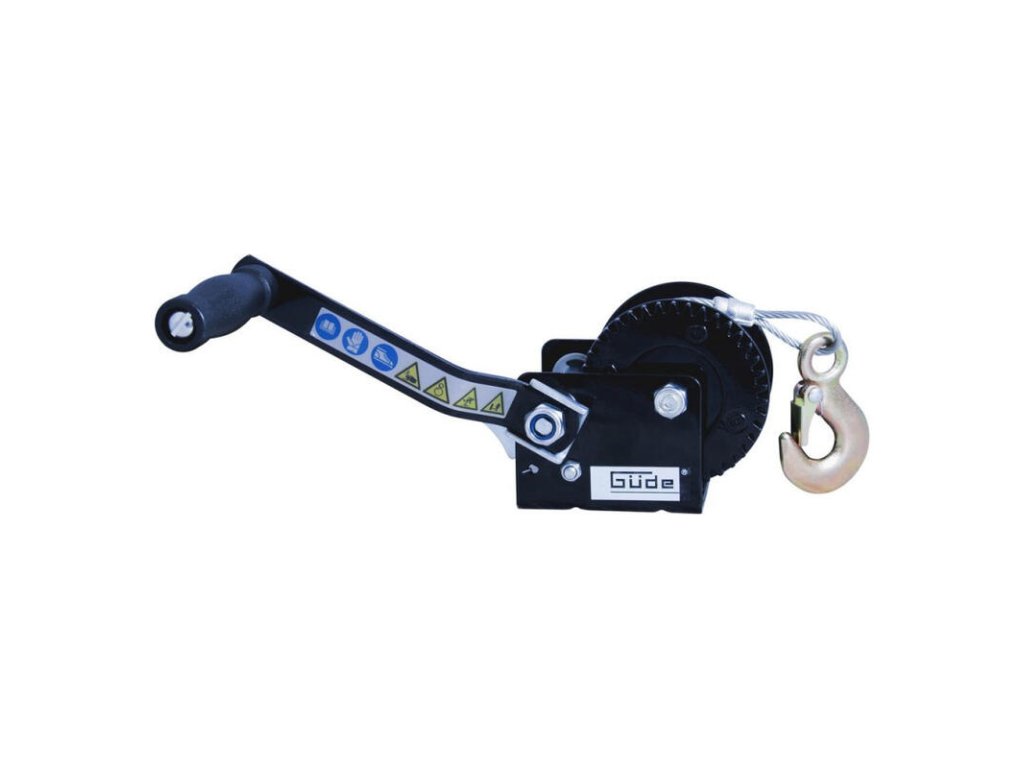Ručný lanový navijak na vodorovné ťahanie bremien. Vhodný na použitie na miestach bez elektriny, napríklad v garáži, na záhrade, na prívesoch alebo v lesníctve a poľnohospodárstve. Zdvíhací hák s otvorom v tvare slzy, blokovacia páka, ručná kľuka s mäkkým úchopom. Základová doska s otvormi pre pevnú montáž na vhodných oporných bodoch, oceľové lano.