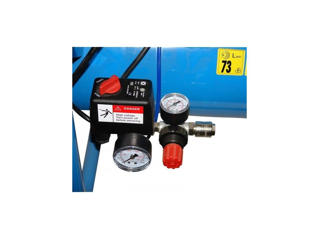 Bezolejový 2-valcový piestový kompresor s priamym pohonom, rukoväť, odolný pomalý chod, o 20% tichší ako iné kompresory, manometer tlaku v kotle a pracovného tlaku. Redukcia tlaku, 1 spojka stlačeného vzduchu, poistný ventil a skrutka na vypúšťanie kondenzátu. Vzduchový filter. Originálny tlakový spínač Condor. Ventily z nehrdzavejúcej ocele. Vzduchové pneumatiky.