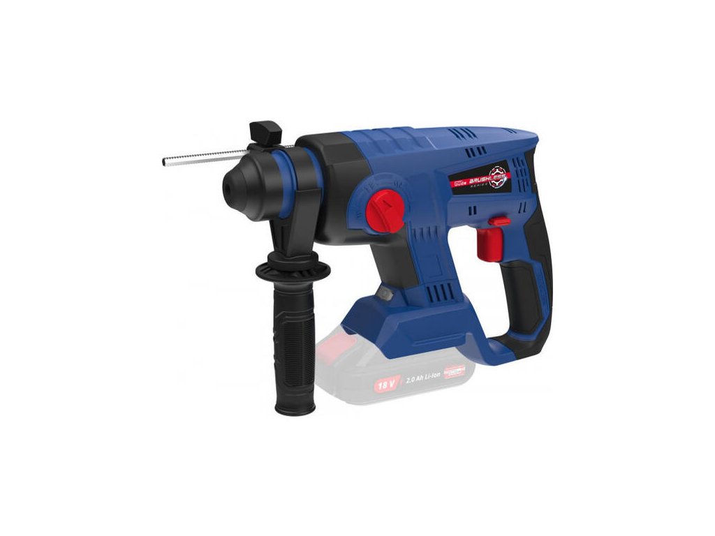 Akumulátorové vŕtacie kladivo zo série akumulátorového náradia 18V E3. Pogumovaná rukoväť pre bezpečnú prácu, variabilná, odnímateľná prídavná rukoväť. Kovový doraz na nastavenie hĺbky vŕtania, upínanie nástrojov SDS plus. Pravý/ľavý chod, možnosť vypnutia vŕtania s príklepom, zastavenie otáčania pre ľahké sekacie práce, LED pracovné svetlo, 4 funkcie: vŕtanie/sekanie/vŕtanie s príklepom/zastavenie otáčania. Dodáva sa bez akumulátora a nabíjačky.