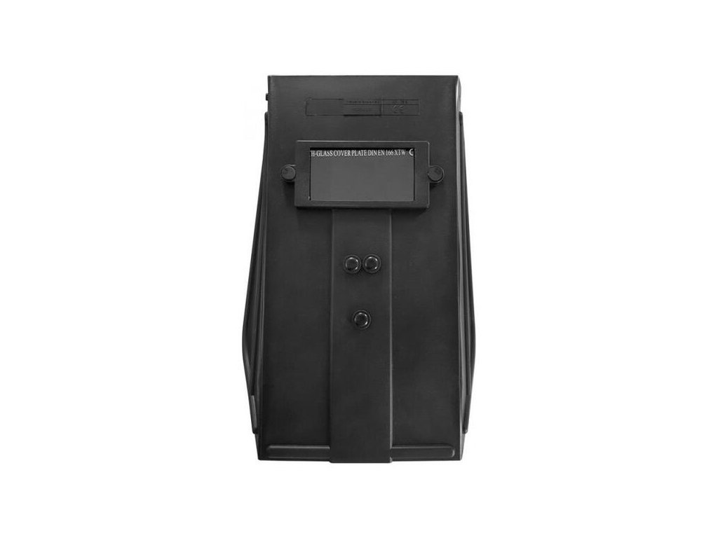 Ľahký a pohodlný štít na ručné zváranie so sklom so stupňom tmavosti DIN 12 určený na zváranie elektródami a zváranie v ochranných atmosférach maximálne do 300 A. Veľká plastová rukoväť.