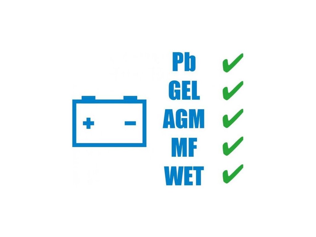 - Automatická nabíjačka s jednoduchou obsluhou je vhodná pre všetky bežné 6 V a 12 V autobatérie typu PB, GEL, AGM, MF, WET.