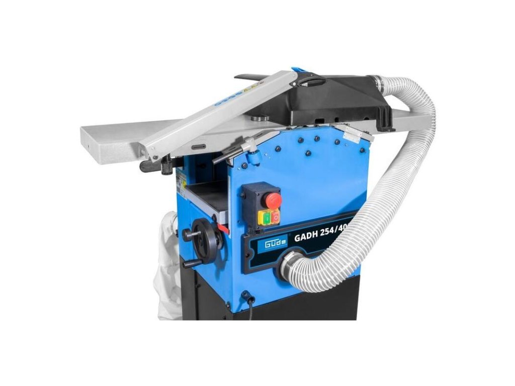 Kombinovaný drevoobrábací stroj (hobľovačka - zrovnávačka) s integrovaným odsávacím zariadením s externým vreckom na zber pilín, určený ku komplexnému opracovaniu plochých/hranolových profilov z masívneho dreva. Hobľovacie stoly z tlakovo liateho hliníka. Nastavenie hrúbkovacieho stola ručným kolieskom. Bezpečnostný spínač s uvoľnením nulového napätia, istič. Uzavretá základňa, hriadeľ noža s 2 hobľovacími nožmi HSS, paralelný doraz. Integrované kolieska pre ľahký transport.