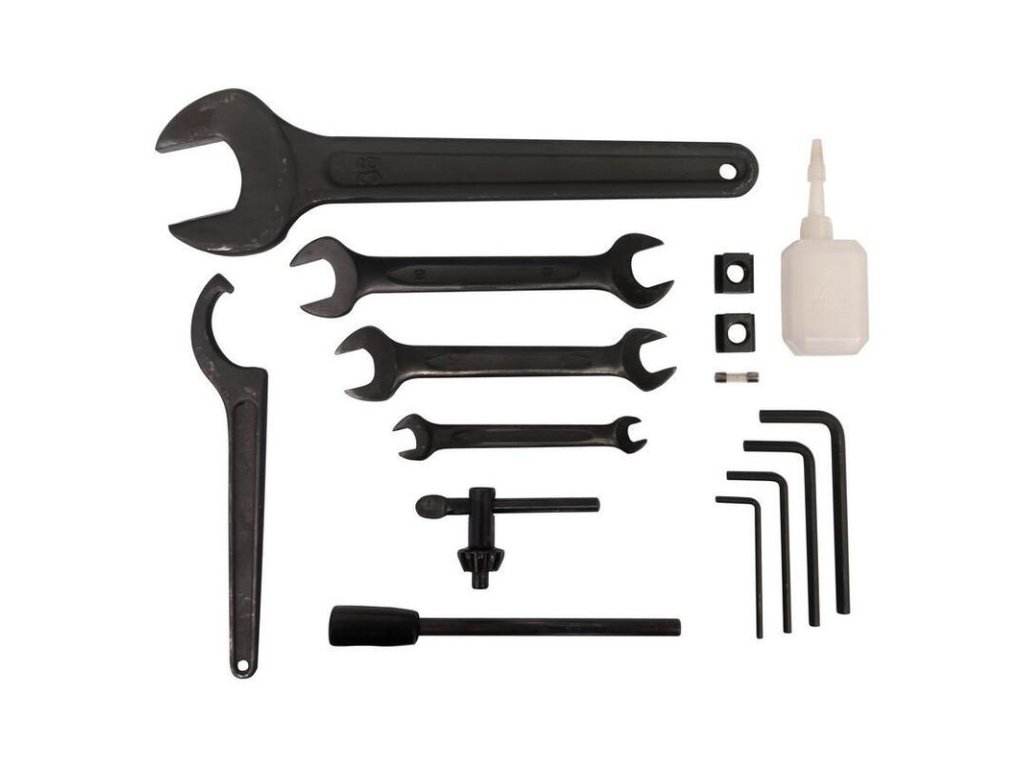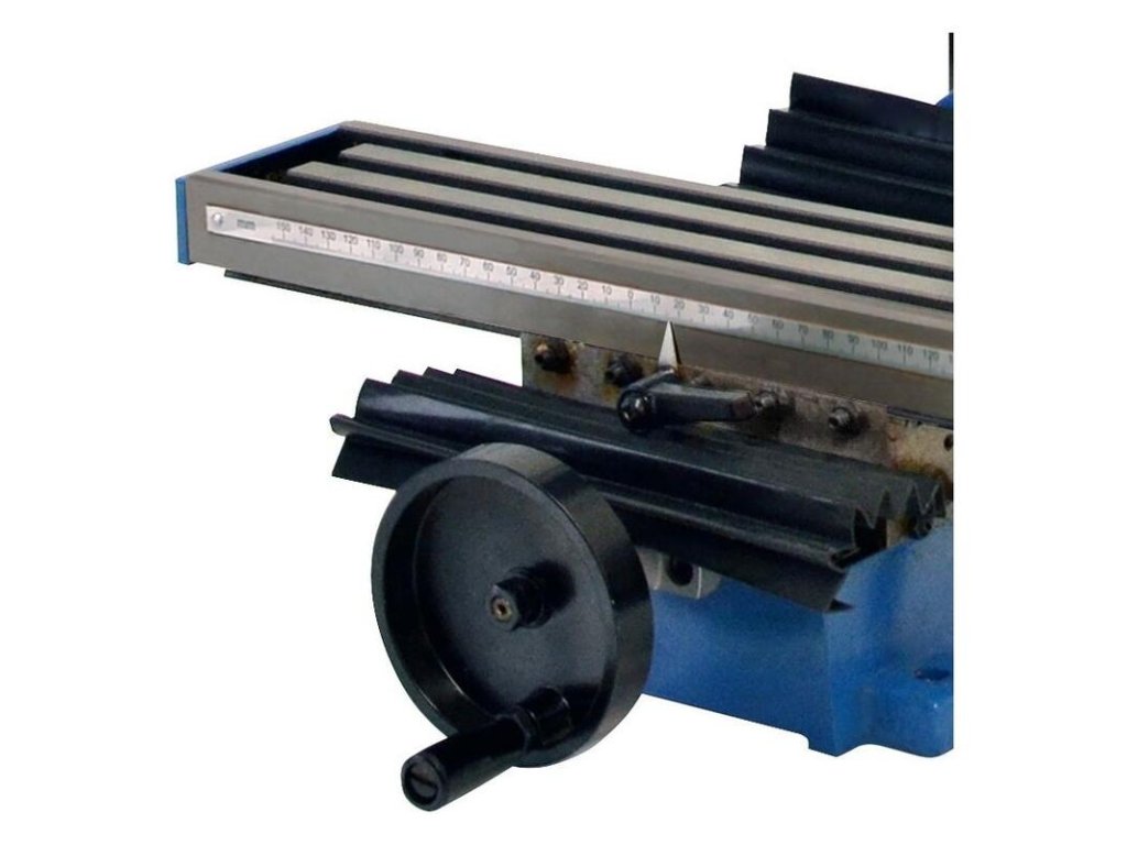 Hlava stroja s rybinovým vedením, vŕtacia hlava sklopná o +/- 45°. Upínanie vretena MK3 a kužeľ skľučovadla B16. Vysoká sústrednosť (<0,04 mm). Ručné kolieska s nastaviteľnými krúžkami stupnice. Jemné nastavenie pre vŕtanie a frézovanie. Upevňovací čap na zaistenie vretena. Vymeniteľná poistka. Ochrana proti pilinám. Plastová nádoba na olej, skľučovadlo, vidlicový, hákový a imbusový kľúč.