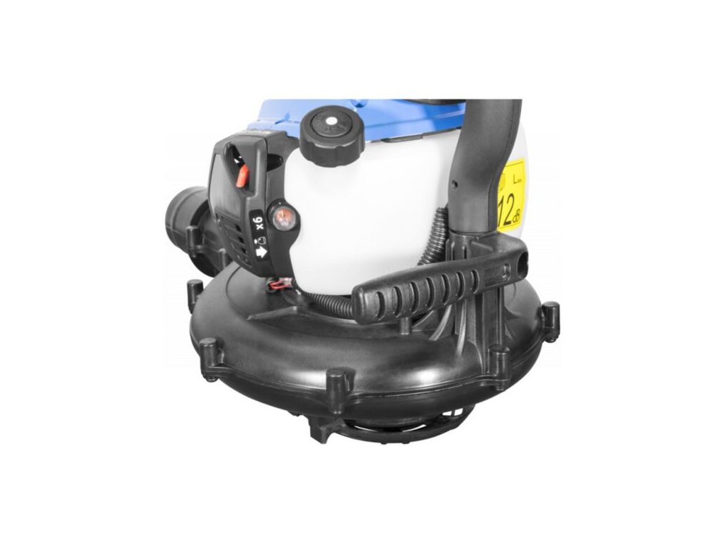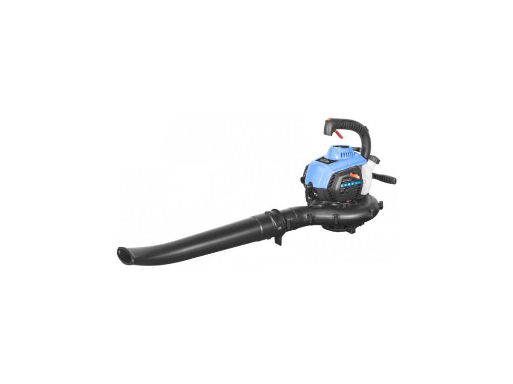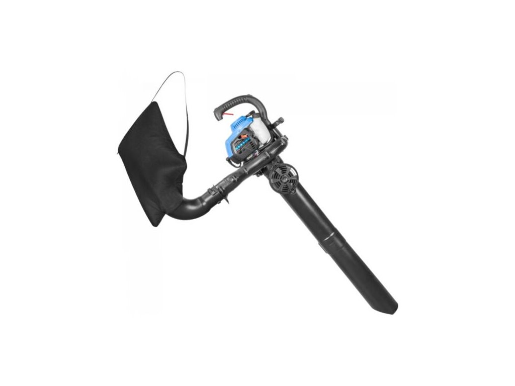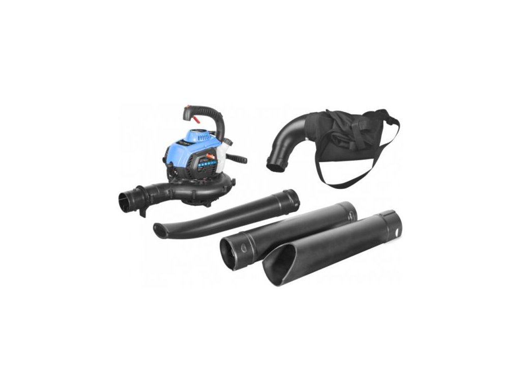 Benzínový fúkač a vysávač lístia s 2 - dielnou sacou a fúkacou trubicou, veľký zberný vak s nosným popruhom, sýtič, vypínač, prídavná rukoväť a palivová pumpa na uľahčenie štartu, kľúč na zapaľovacie sviečky. Vhodný pre prácu v záhrade, na dvore, na chodníkoch a podobne.