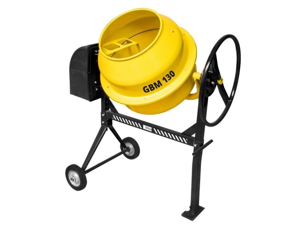 - Výkonná miešačka GBM 130 na betón s objemom 130 l a s 18-násobnou aretáciou bubna.