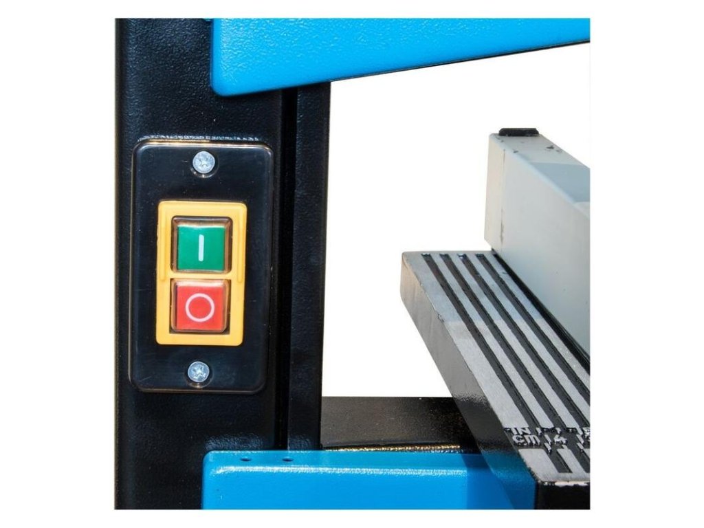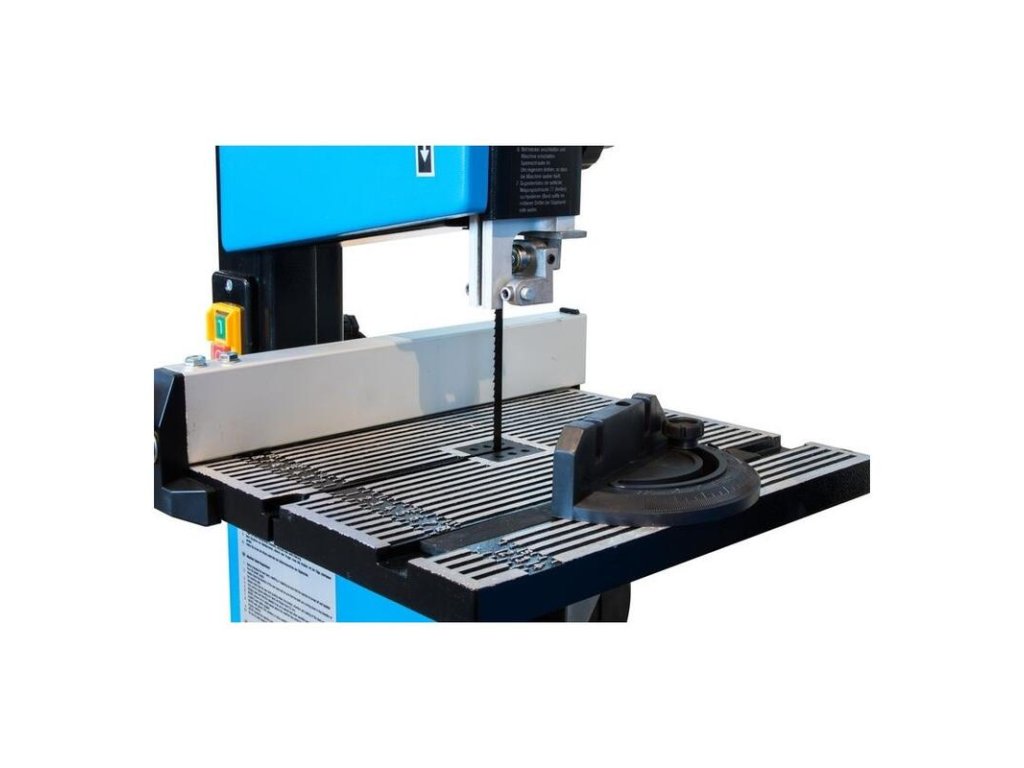 Pásová píla s hliníkovými kladkami pílového pásu. Hliníkový stôl výkyvný do 45°, pevný stojan s montážnymi otvormi, kovový kryt. Spínač nulového napätia, pozdĺžny a pokosový doraz, prípoj odsávania.