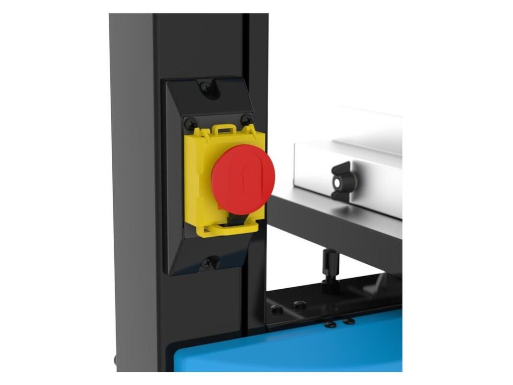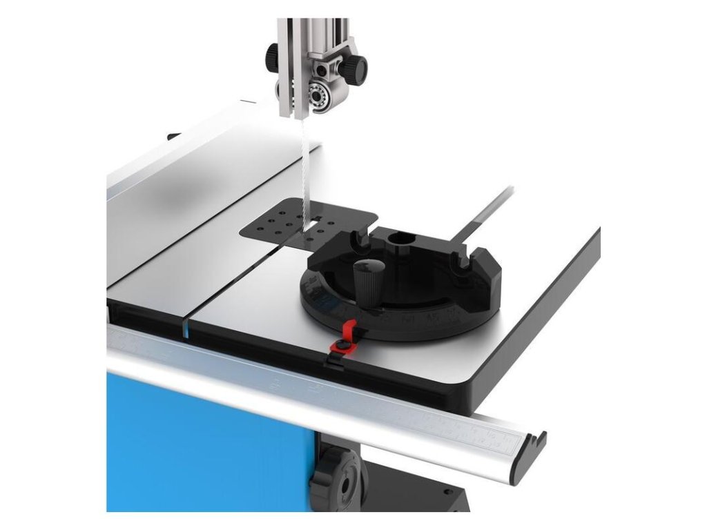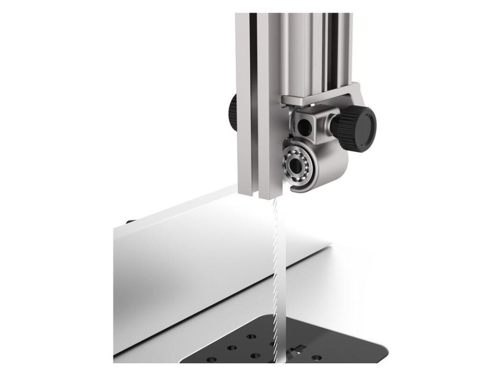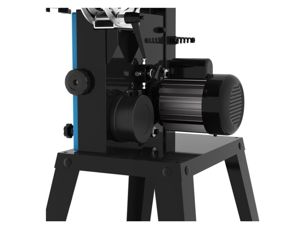 Pásová píla so špeciálnymi pogumovanými hliníkovými kladkami pre vysokú životnosť pásu. Hliníkový stôl výkyvný do 45°, prípoj odsávania, pevná oceľová základňa, kovový kryt. Vrátane podstavca, pílového pásu, paralelného a pokosového dorazu.