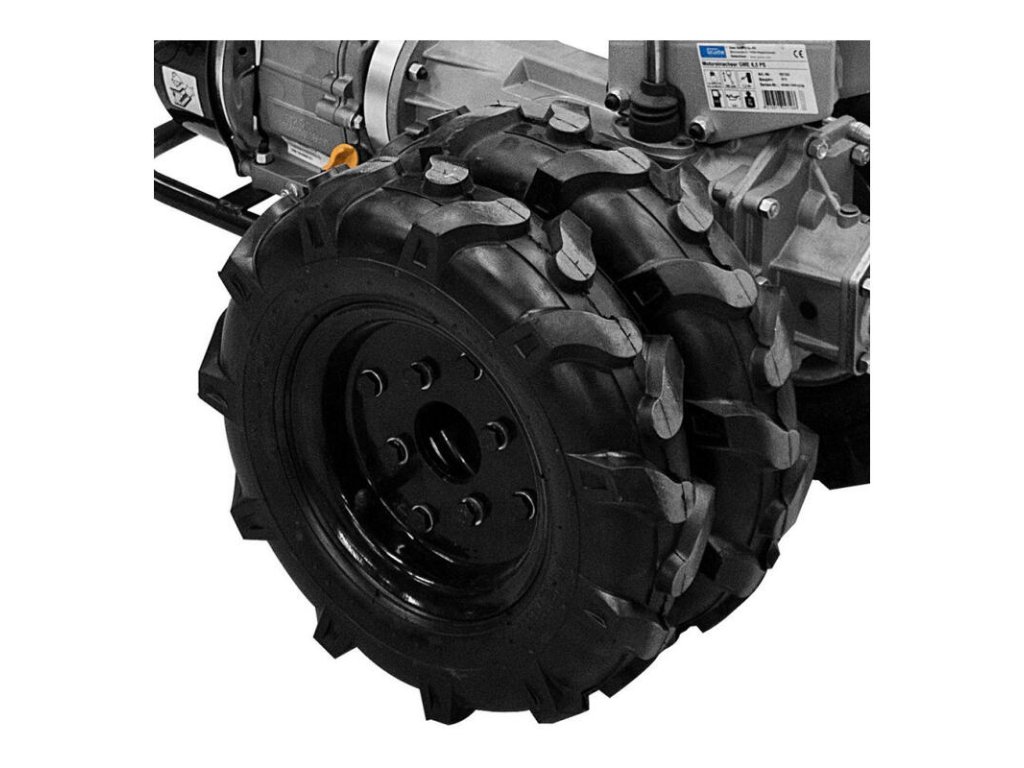 Prídavné kolesá určené na zvýšenie komfortu a stability malotraktora, rozchod kolies sa predĺži až na 620 mm (vonkajší). Vhodné k Univerzálnemu dvojkolesovému malotraktoru GME 6,5 V (kód tovaru: 95187) a Univerzálnemu dvojkolesovému malotraktoru GME 6,5 PS (kód tovaru: 95180). V balení 2 ks kolies 4.00-8 a 2 ks adaptérov.