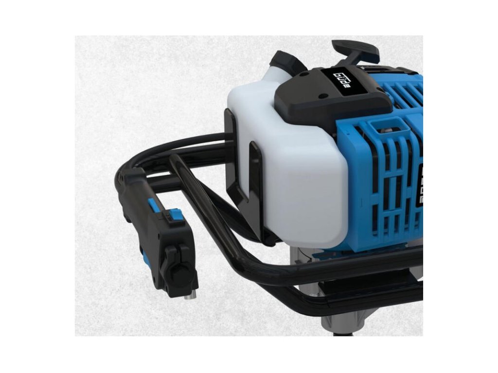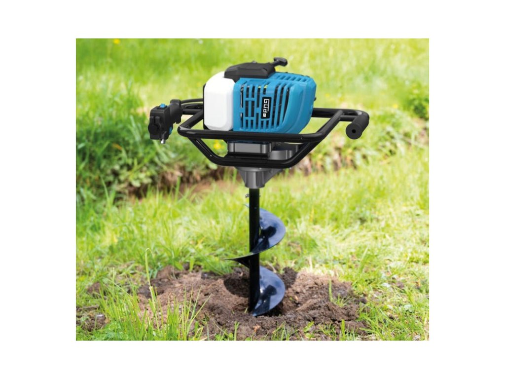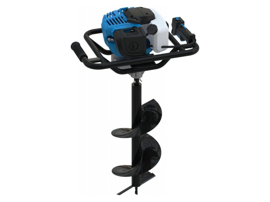 Benzínový zemný vrták s 2-taktným benzínovým motorom, pre využitie v lesníctve, záhradníctve a krajinnej architektúre. Vhodný na vŕtanie jednoduchých zemných otvorov, na osádzanie stĺpikov alebo vŕtanie základov. Ovládacie prvky kompaktné v rukoväti. Palivové čerpadlo Primer, odstredivá spojka. Vrátane vrtákov 100, 150, 200 mm.