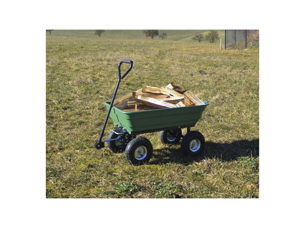 - Zelený záhradný vozík s veľkými kolesami a 125 l vaničkou využijete v záhrade, na chalupe či na dvore.