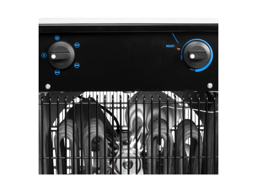 Elektrický ohrievač s dvoma stupňami ohrevu s funkciou ventilátora. Ochrana proti prehriatiu, termostat, praktické rukoväte na oboch stranách. Ohrievač je vhodný len do dobre izolovaných miestností alebo na príležitostné použitie v priestoroch, v ktorých nie sú povolené vykurovacie zariadenia na olej alebo plyn.