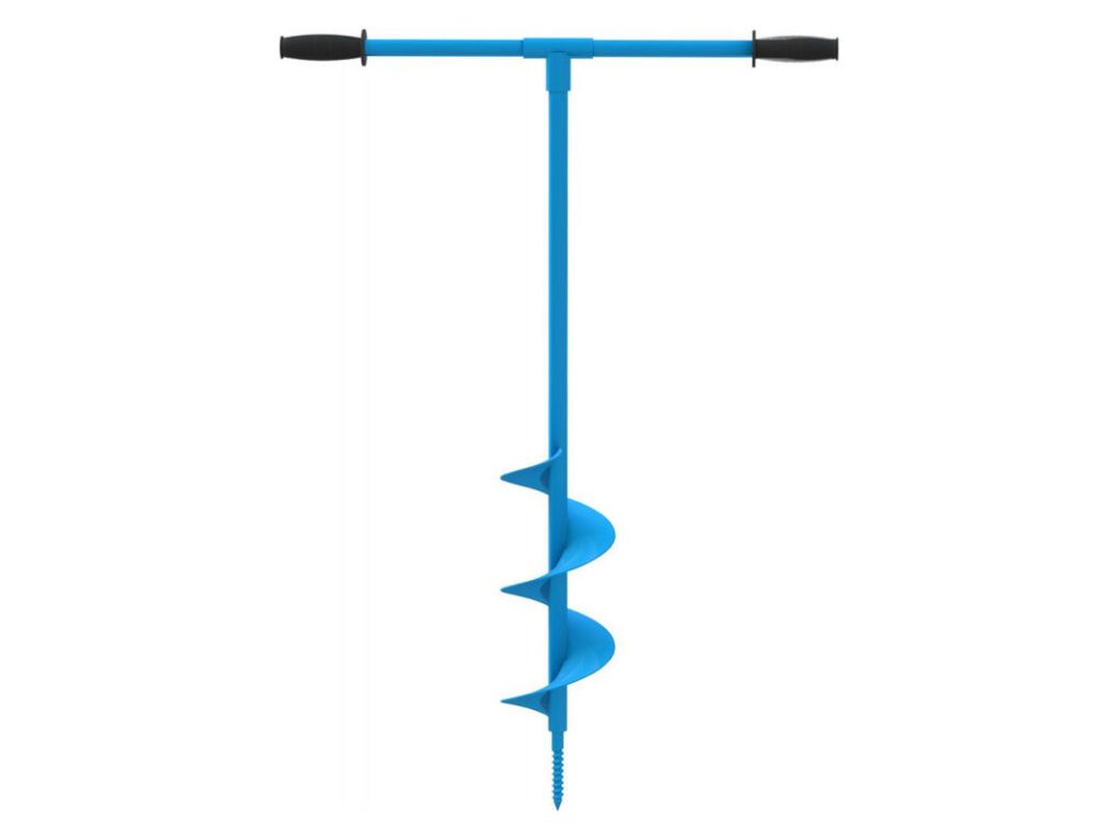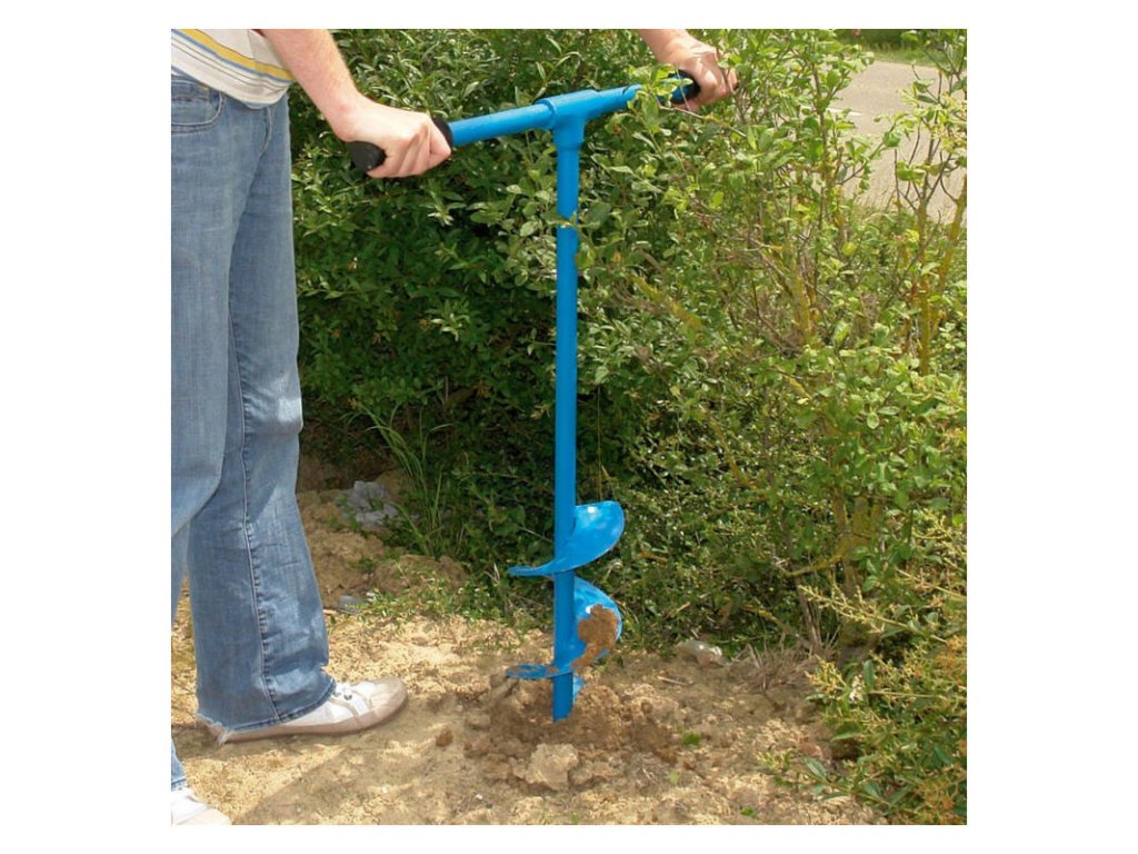 Ručný zemný vrták na osádzanie plotových stĺpikov, sadenie stromov, kríkov a podobne. Kovová T-rukoväť. Celková výška 1030 mm.