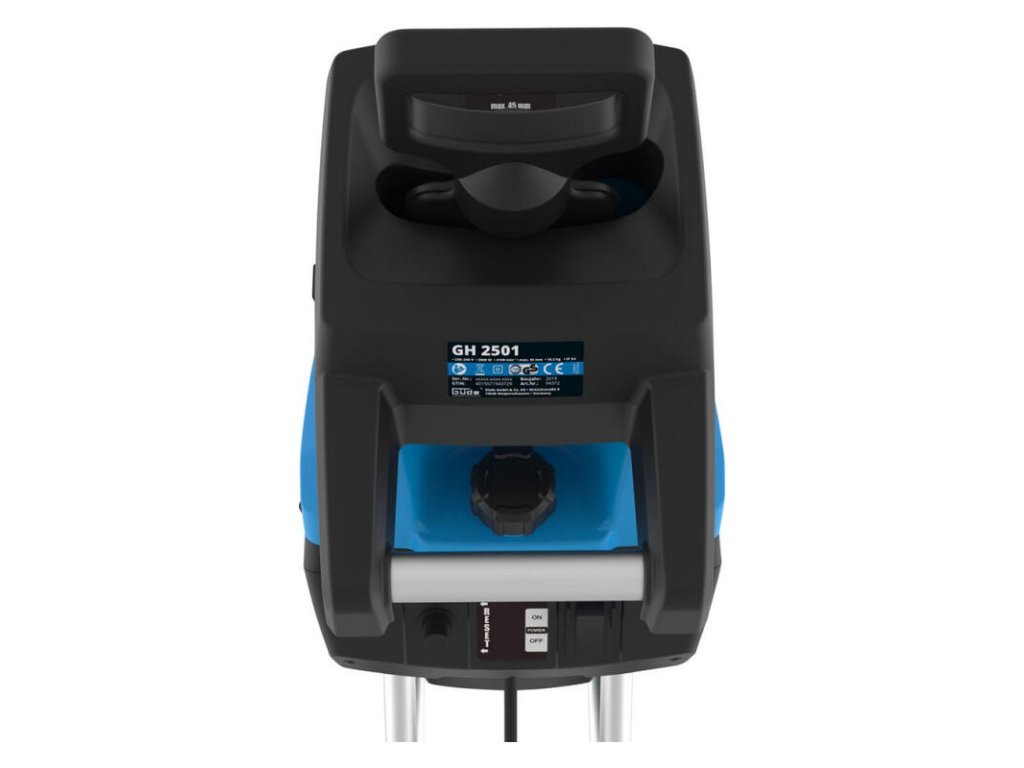 Výkonný drvič s jednoduchou obsluhou. Nízka údržba, efektívna priepustnosť materiálu pre všestranne upravenú záhradu. Drvenie nožmi, rám z oceľových rúr, samočinné vťahovanie. Poistka proti preťaženiu, podnapäťová spúšť, veľké transportné kolesá, ochrana proti striekajúcej vode, podávanie.