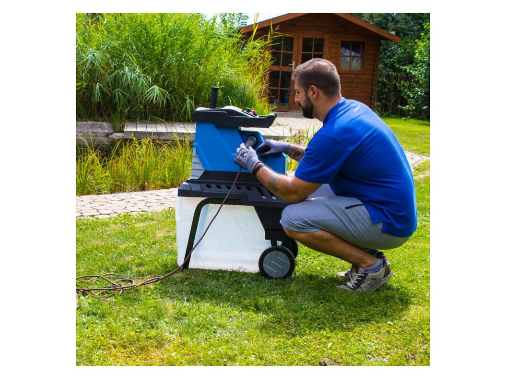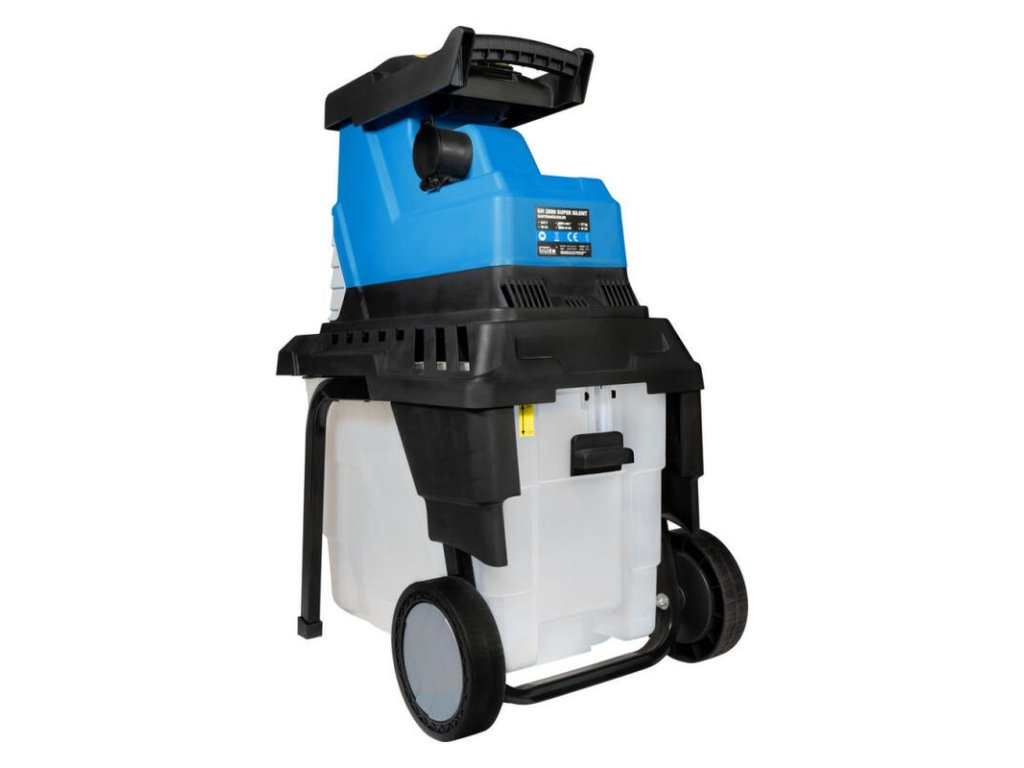 Výkonný drvič s tichým chodom určený na drvenie záhradného odpadu pomocou valcov. Indukčný motor, funkcia spätného chodu, veľký 55 l zberný box, pevný podstavec s transportnými kolesami, ochrana proti striekajúcej vode.