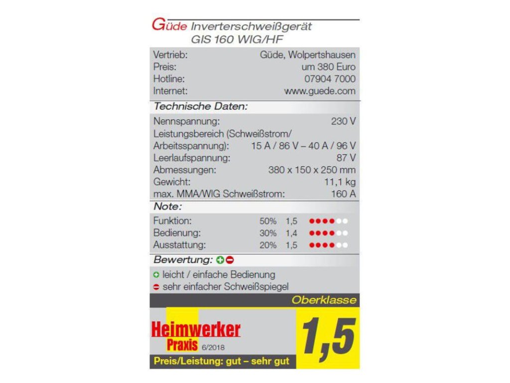 GÜDE GIS 160 WIG/HF Invertorová zváračka TIG HF