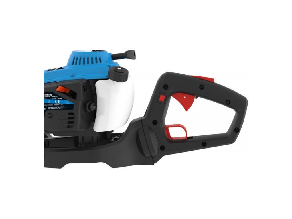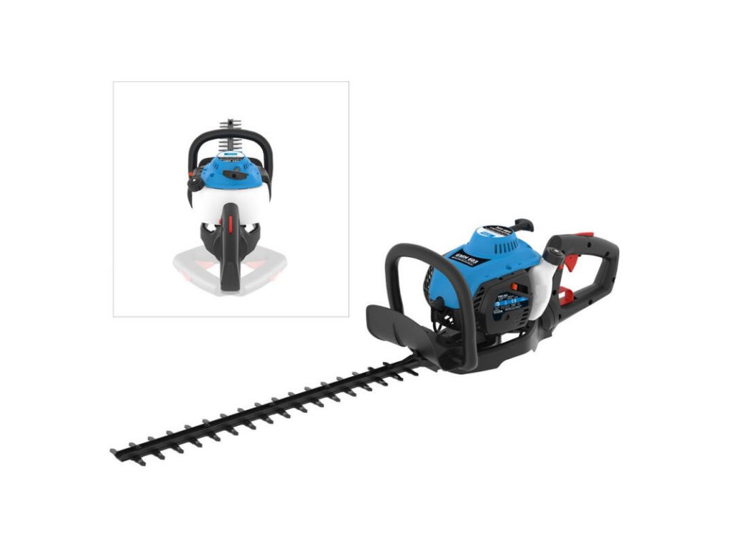 Benzínové nožnice na živý plot s 2-taktným OHV motorom, reverzným štartom, palivovou pumpou. Protibežné laserom opracované a diamantom ostrené nože, trojbodový antivibračný systém, prídavná rukoväť s tlmením vibrácií, funkčná rukoväť, otočná o 180°, ochrana rúk, kľúč od nádrže a na sviečky.