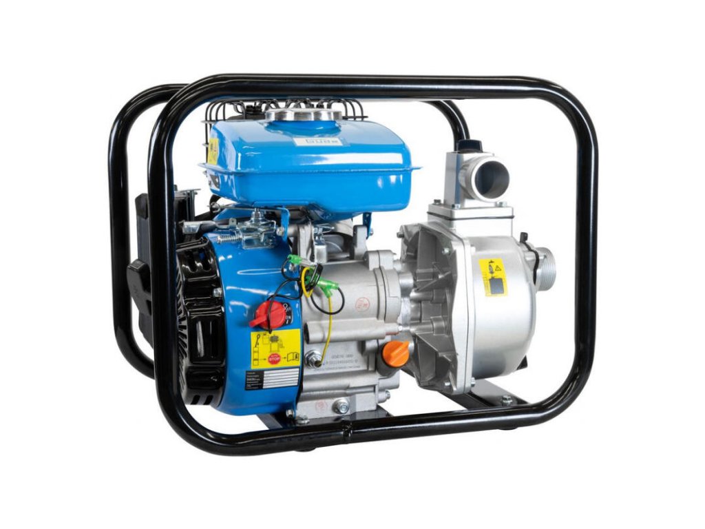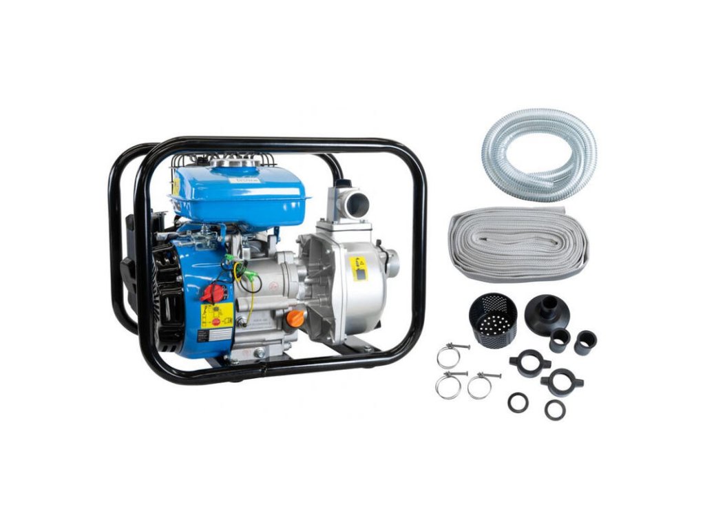 Čerpadlo s telesom z tlakovo liateho hliníka, mechanické tesnenie, odvzdušňovacia a vypúšťacia skrutka, obežné koleso z tlakovo liateho hliníka. Rukoväť na prenášanie, hlavný vypínač, ochrana pri nízkej hladine oleja, reverzný štartér, 2 spojky na hadicu s hadicovými svorkami, sací kôš. Vrátane sady prípojných adaptérov, 4-metrovej sacej hadice, 10-metrovej výstupnej hadice. Na prečerpávanie čistej alebo mierne znečistenej vody, pre oblasti bez elektriny, na zavlažovanie polí, dodávka vody na stavbu, do záhrady, núdzové odčerpávanie vody.