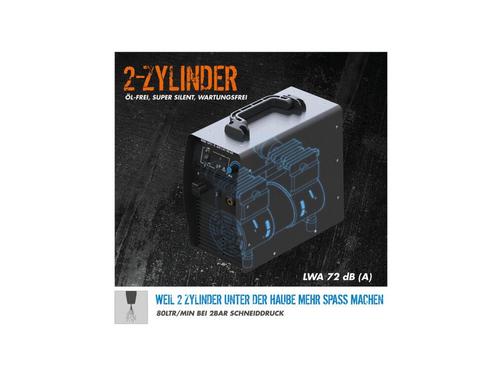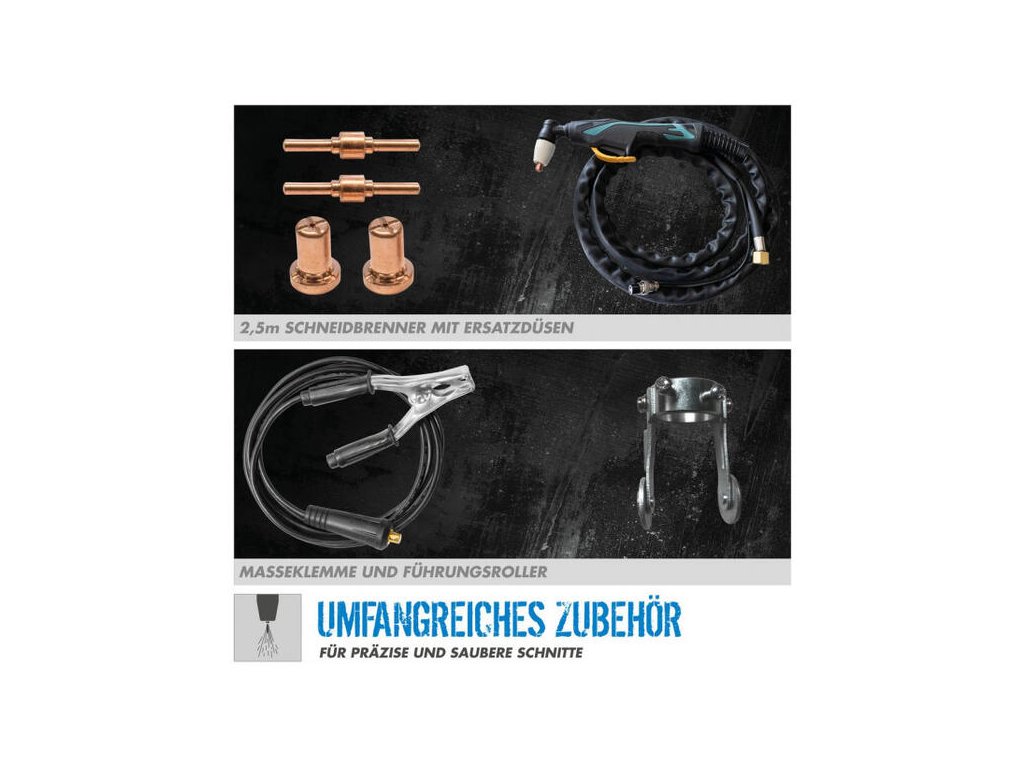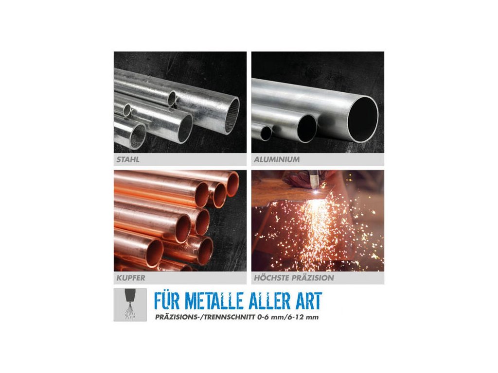 Vysokofrekvenčná plazmová rezačka s integrovaným kompresorom. Maximálna hrúbka rezaného materiálu 12 mm. Rezací horák 2,5 m s valčekovým vedením. Uzemňovací kábel 4 mm2 (s 9-milimetrovým konektorom) 1,5 m. Dve súpravy náhradných trysiek. DM údržbárska jednotka s regulátorom a odlučovačom vody. Dvojmetrová pneumatická hadica.