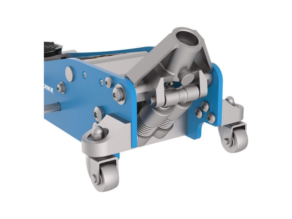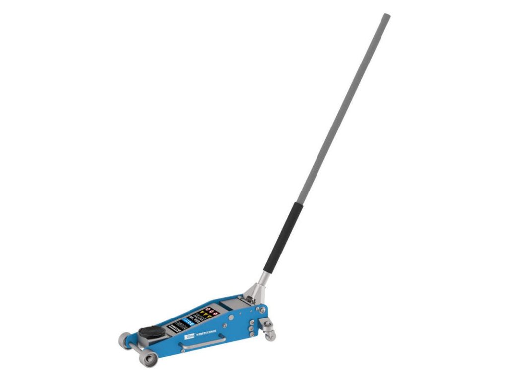 Pojazdný hydraulický zdvihák pre využitie v dielňach, garážach. Dva otočné a dva pevné kolieska, systém dvojitého valca pre až o 50 % rýchlejšie zdvíhanie. Bremeno sa spúšťa pomocou tyče čerpadla a ozubeného prevodu, vrátane gumenej podložky na ochranu spodnej časti vozidla. Tyč čerpadla sa skladá z 2 častí pre ušetrenie miesta pri skladovaní, s penovou ochranou vozidla. Mimoriadne nízka svetlá výška ideálna pre znížené vozidlá. Nosné rukoväte na oboch stranách.
