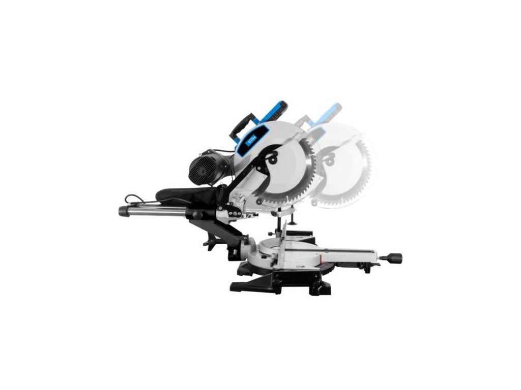 Radiálna kapovacia píla s remeňovým pohonom, radiálne vedenie uložené v guľôčkových ložiskách, široký pracovný stôl, vysoký hliníkový doraz, s laserovým vedením pre presnú prácu, obojstranne otočná pílová hlava, svorka na uchytenie obrobku. Vrecko na zachytávanie triesok na zníženie tvorby prachu pri rezaní. Prípojka na odsávacie zariadenie, s ochranou počas prepravy a rukoväťou na prenášanie.