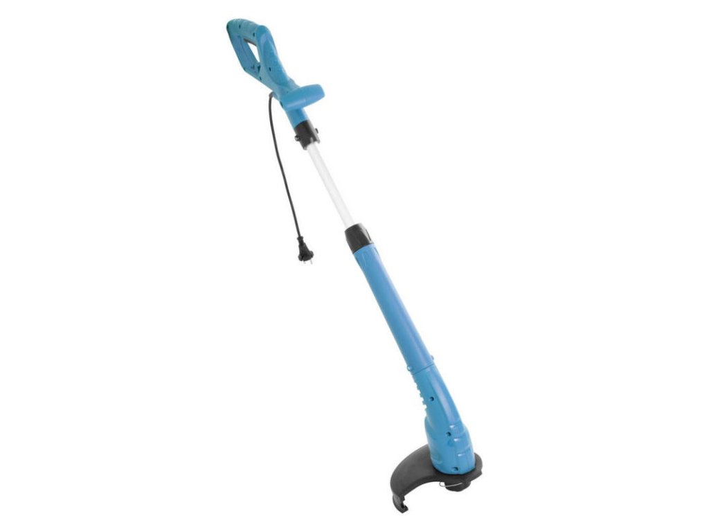 Strunová kosačka vhodná na ľahšie a stredne ťažké vyžínacie práce, rukoväť pre bezpečnú prácu, nastaviteľná pracovná výška pomocou teleskopickej tyče, 2-strunový systém s tlačidlovou nastavovacou automatikou, odľahčenie ťahu kábla.