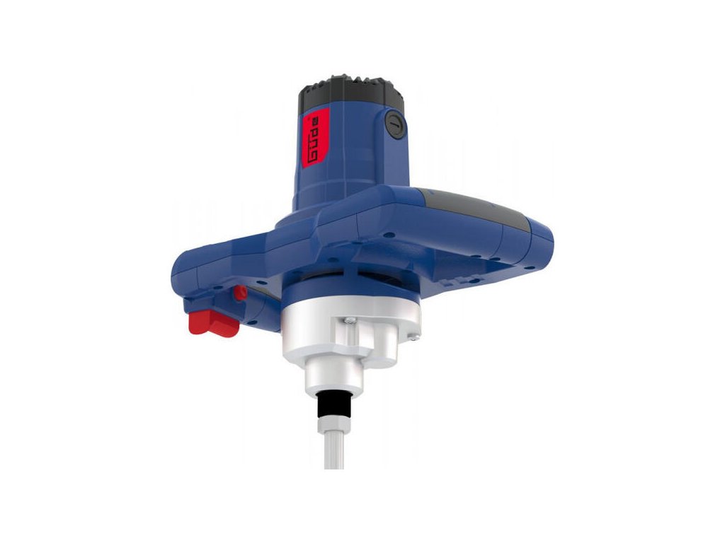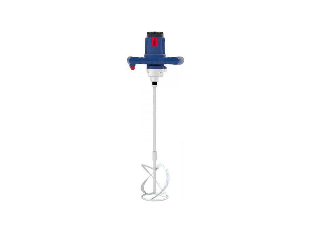 Výkonné miešadlo na miešanie práškových stavebných materiálov. Vysoký komfort pri práci vďaka ergonomickému telesu, pogumovaná rukoväť pre pohodlnú a bezpečnú prácu. Elektronická regulácia počtu otáčok, robustná kovová prevodová skrinka s dlhou životnosťou, zapínač/vypínač. Pravotočivé miešadlo na maltu, omietku a lepidlo.