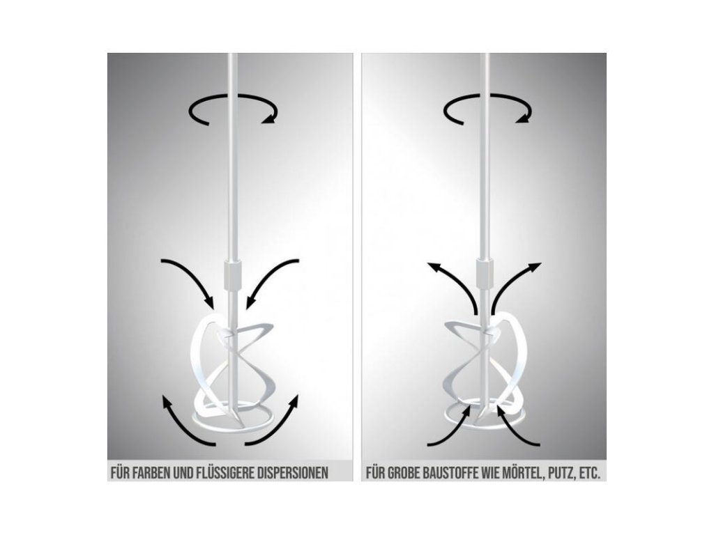Profesionálne a výkonné miešadlo určené na premiešavanie malty, farby a na miešanie práškových stavebných materiálov, ako sú farby a disperzie.