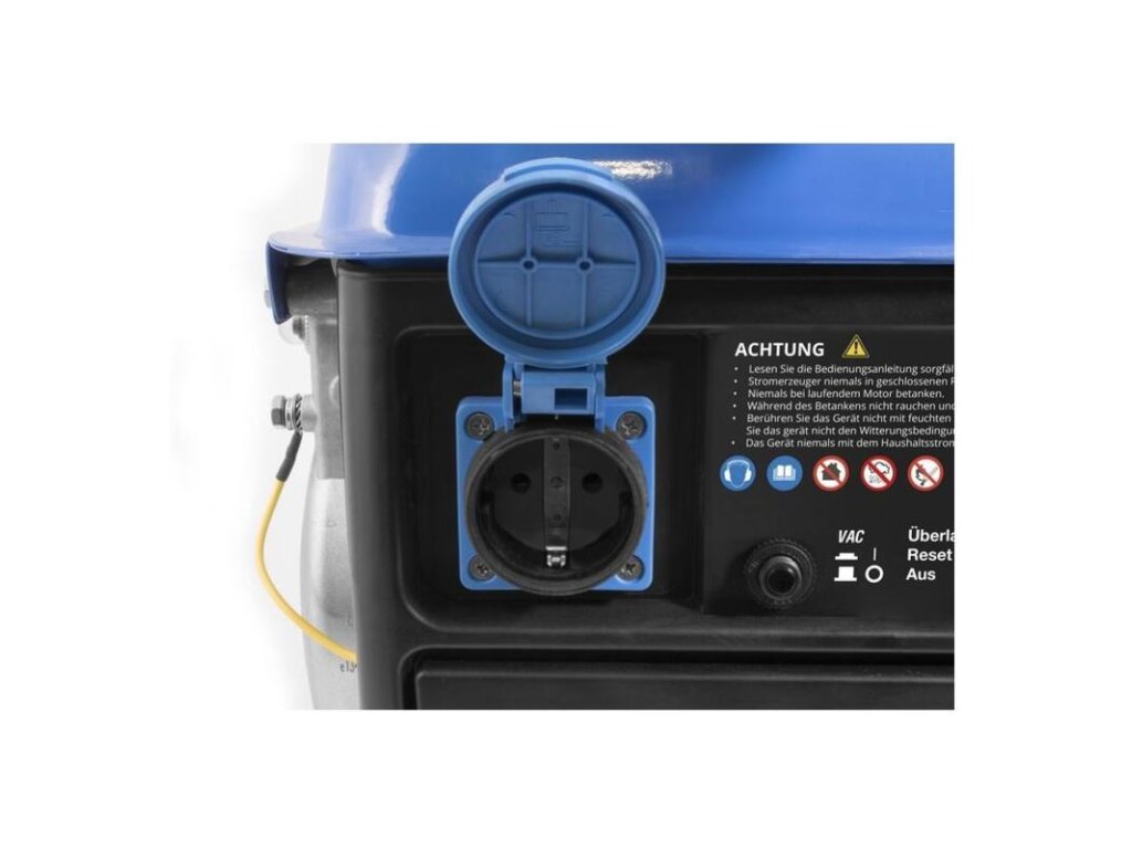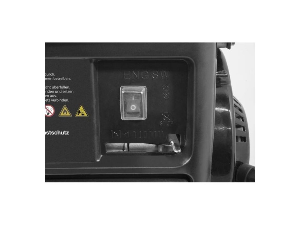Elektrocentrála s 2-taktným synchrónnym generátorom, 1 x Schuko 230 V / 50 Hz, rukoväť, gumené nohy, reverzný štartér, ochrana proti preťaženiu, miešací pomer 1:50.