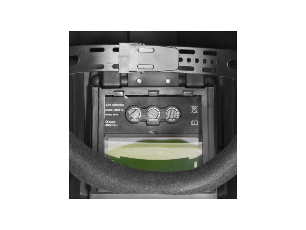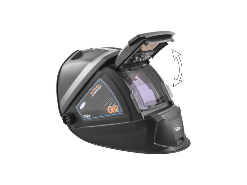 Pevná helma odolná proti nárazu, kombinovaná sklápacia funkcia, odklopiteľný automatický filter, plynulo nastaviteľný stupeň stmievania 9-13, plynulo nastaviteľná citlivosť filtra, nastaviteľná doba oneskorenia, solárne nabíjanie. Plynulo nastaviteľná výstužná páska na hlavu, čalúnená páska na čelo.