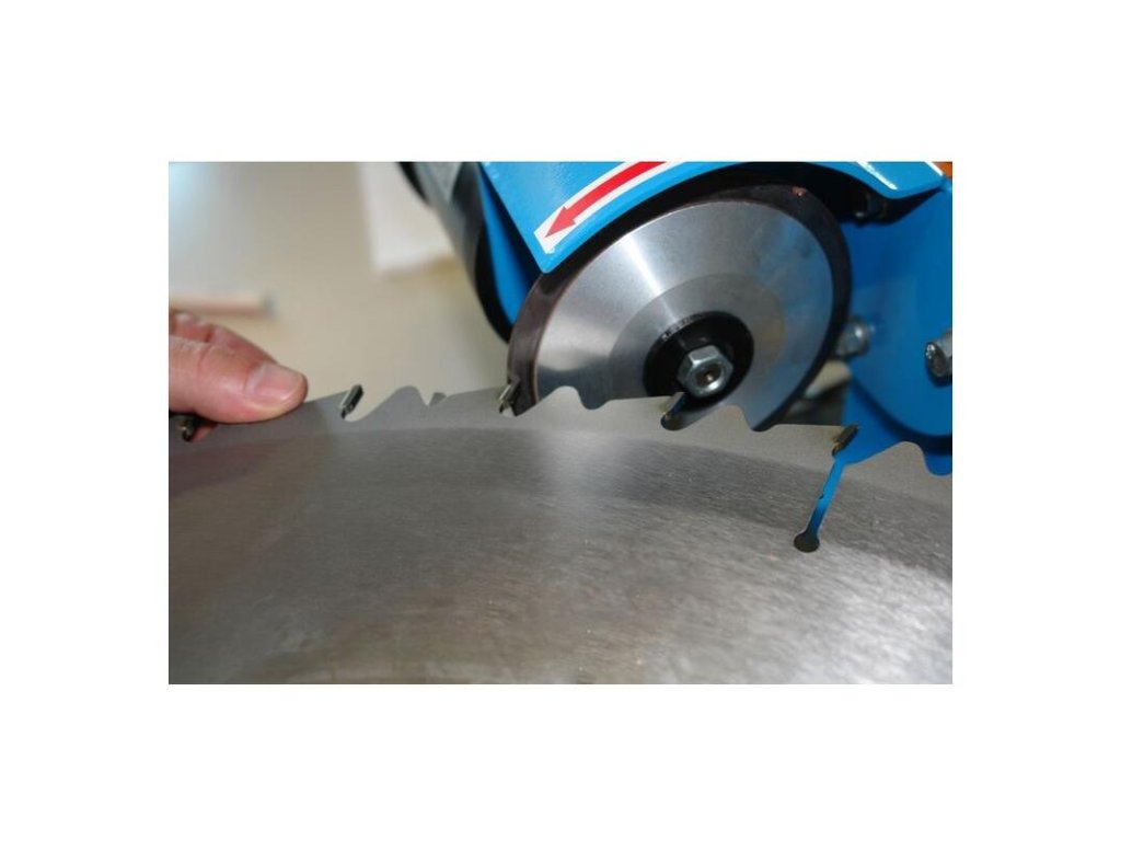 Ostrička na ostrenie tvrdokovových a CV pílových kotúčov priemeru 80 - 700 mm. Osem adaptérov pre všetky bežné priemery otvoru kotúča. Diamantový brúsny kotúč Ø125x32x10 mm pre tvrdokovové kotúče.