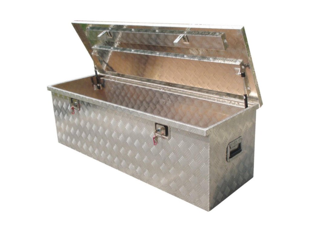 - Všestranne použiteľný celokovový box vyrobený z hliníkového rebrovaného plechu (plechu s oválnymi výstupkami) pre bezpečné uloženie a prepravu náradia, vybavenia a podobných predmetov.