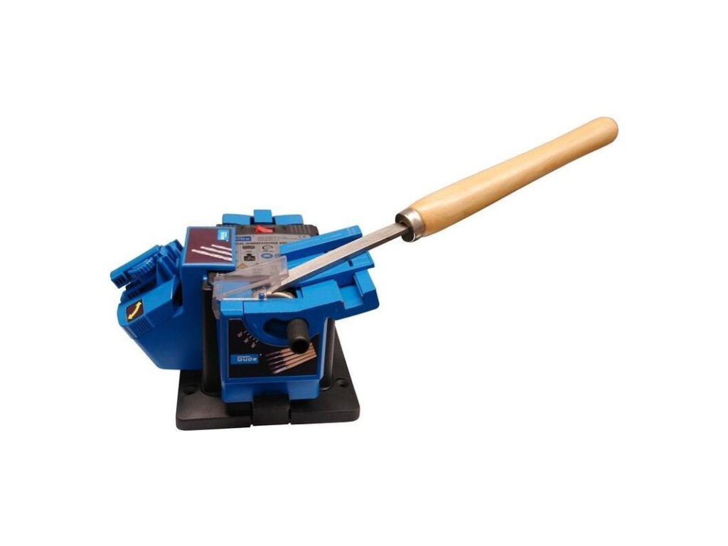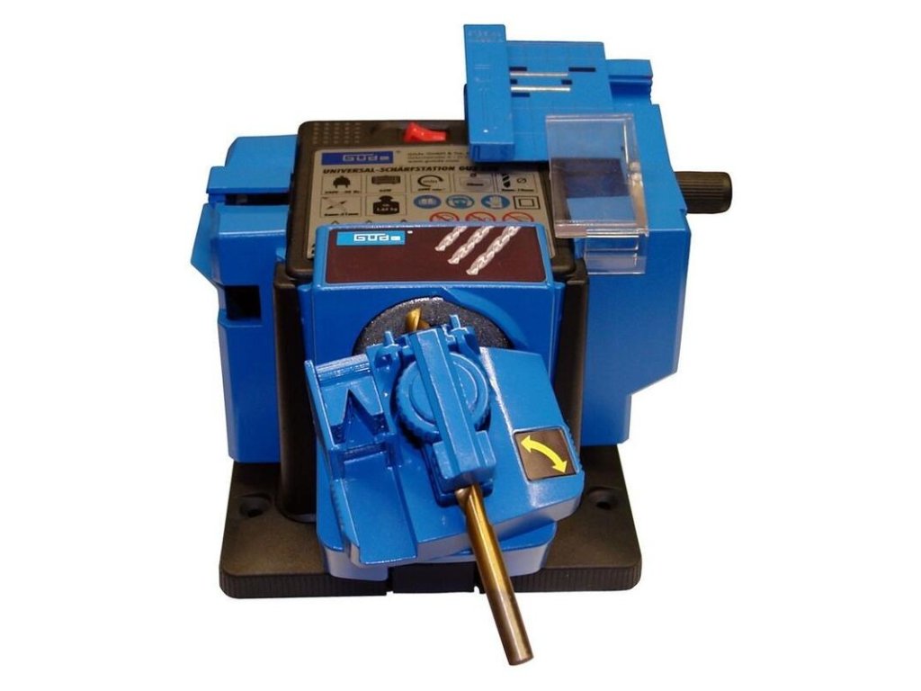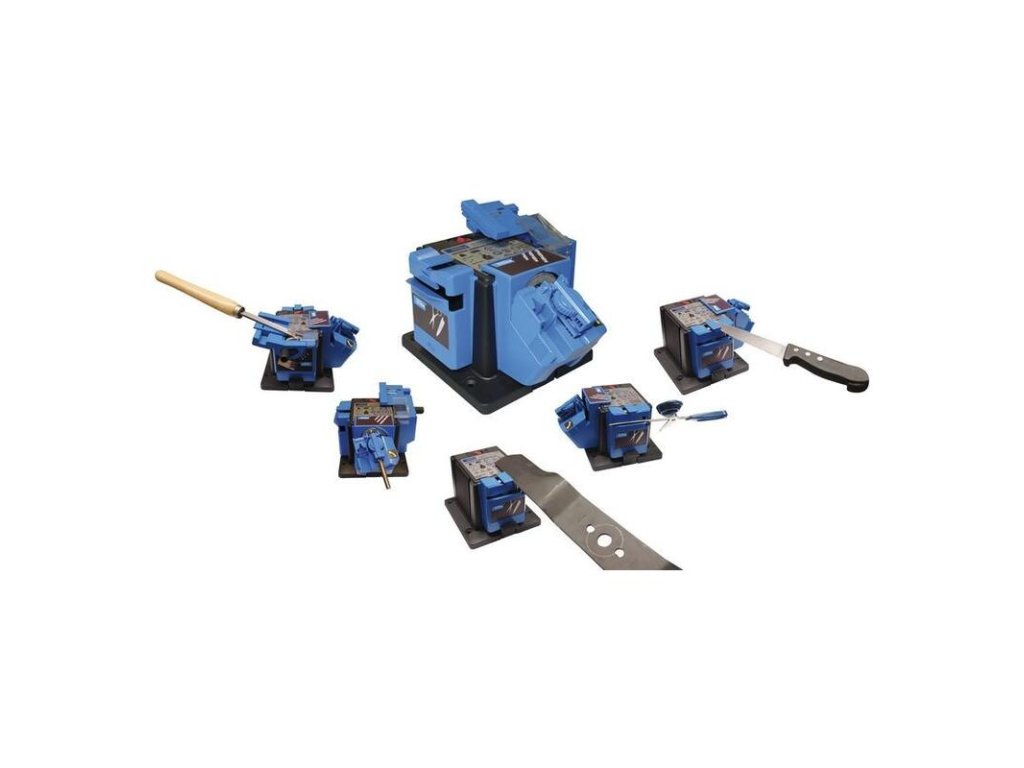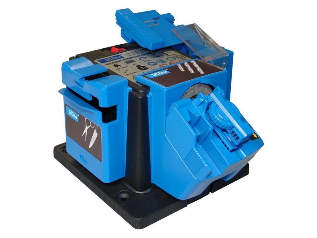 Viacúčelová ostrička s integrovaným zariadením na brúsenie vrtákov, na ostrenie/brúsenie kuchynských nožov a nožníc, záhradníckych nožníc, špachtlí, skrutkovačov, dlát, hobľovacích nožov, sekier a podobne. Brúsny kameň pokrytý diamantom.