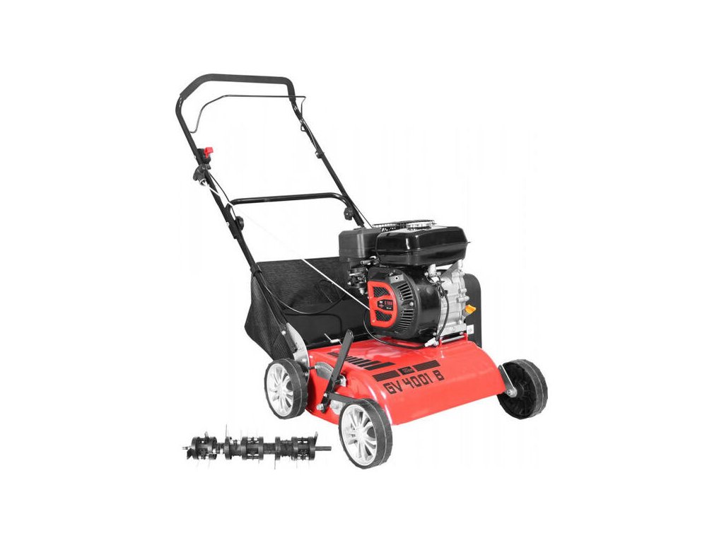 Benzínový vertikutátor vhodný na prevzdušnenie malých až stredne veľkých trávnatých plôch. Veľmi výkonný 4-taktný motor zabezpečuje prekyprenie trávnatého porastu a odstránenie machu a buriny vrátane koreňov, je šetrný k trávniku. Pre pohodlnú manipuláciu je vybavený ergonomicky tvarovanou rukoväťou, 30-litrovým zberným košom a veľkými, ľahko bežiacimi kolesami na guľôčkových ložiskách. Poistka pri nedostatku oleja v motore. Nožový valec 2v1 na vertikutáciu a prevzdušnenie. 7-stupňové centrálne nastavenie výšky kosenia.