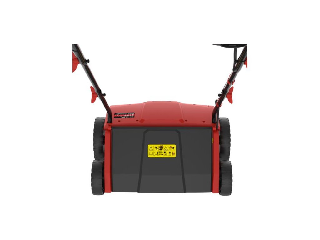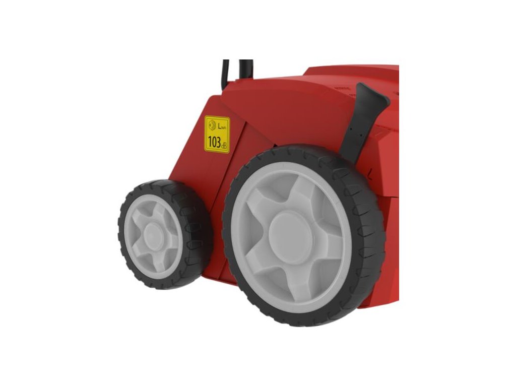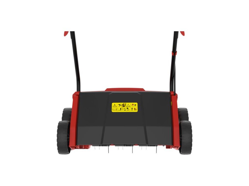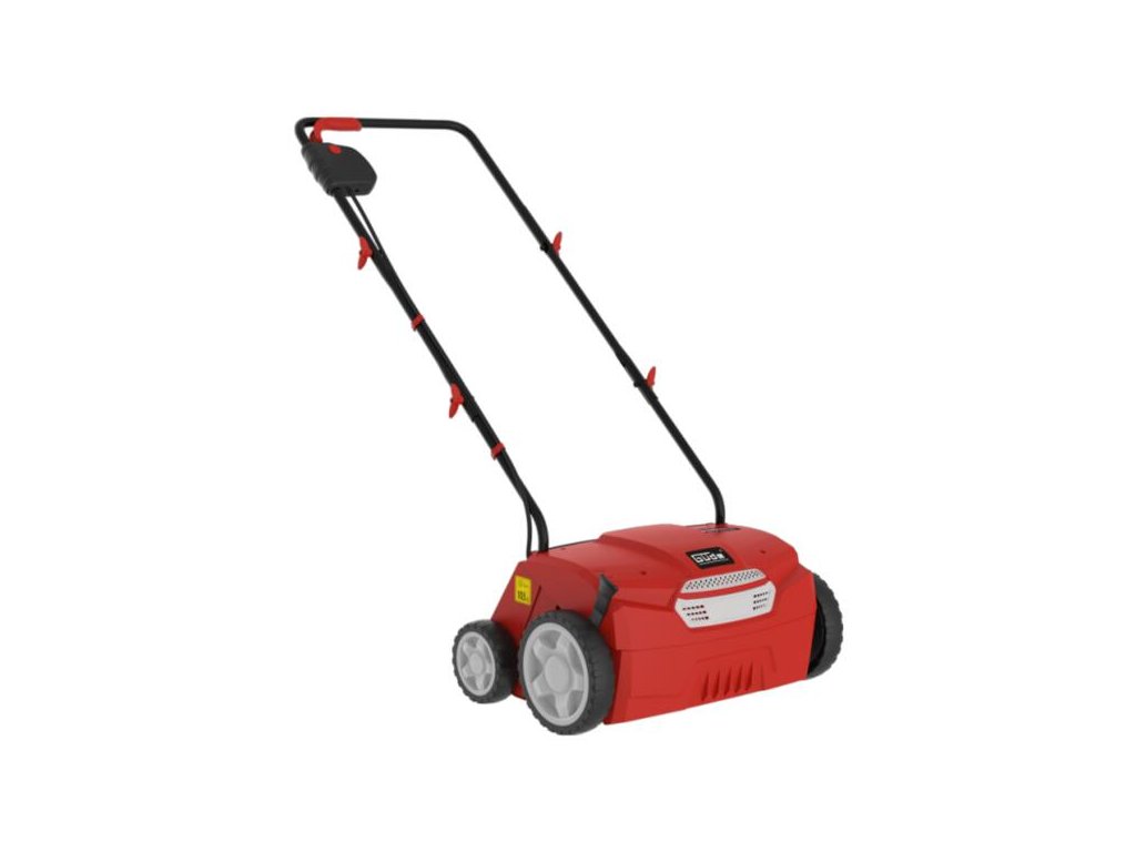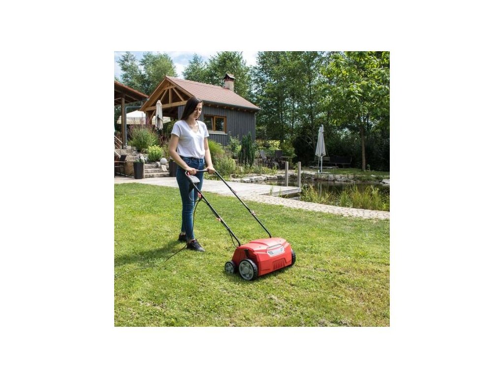 Elektrický vertikutátor s 2v1 nožmi na vertikuláciu a prevzdušňovanie. Bezpečnostný spínač, sklápacia vodiaca tyč, kolesá s ľahkým chodom, 4-násobné centrálne nastavenie výšky (-10 / -5 / 0 / +5 mm), odľahčenie vedenia káblov.