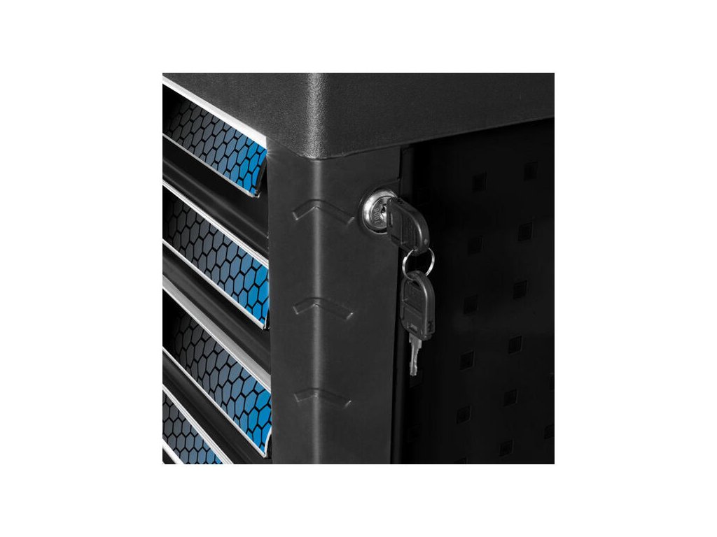 - Normované dierovanie bočných stien umožňuje dodatočné možnosti rozšírenia na umiestnenie príslušenstva, ako napríklad dodatočných držiakov náradia, ochrana hrán.