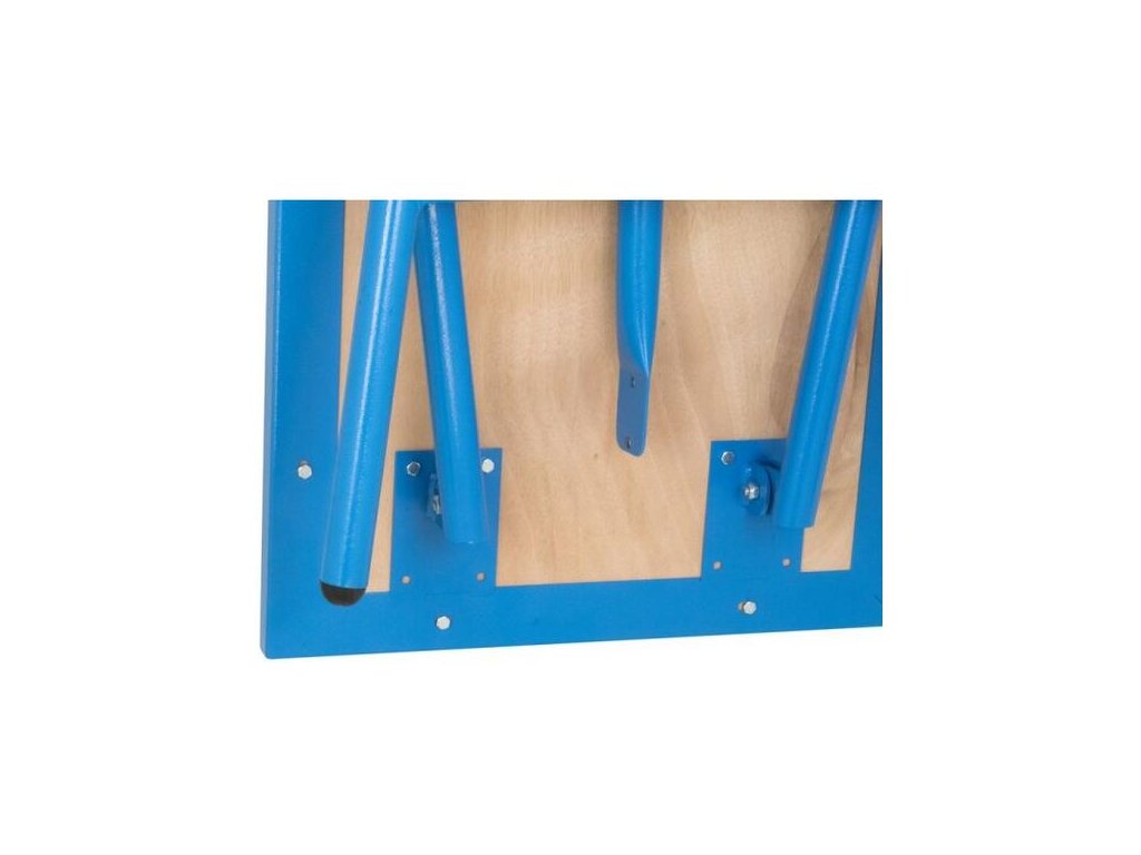 Sklápací pracovný stôl využiteľný v domácnosti, v garáži, v dielni alebo na stavbe. Pevná rúrková konštrukcia, priestorovo nenáročná vďaka skladaciemu mechanizmu. Robustná stolová doska je vyrobená zo špeciálneho viacvrstvového dreva, s oceľovými hranami po celom obvode.