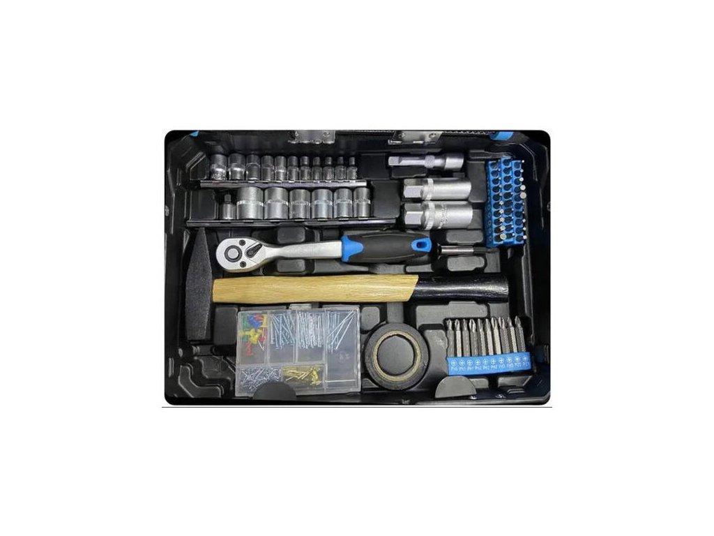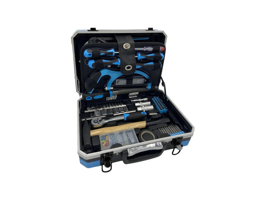 Základná výbava náradia pre každého domáceho majstra. 241-dielna súprava náradia vyrobená z chróm-vanádiovej a uhlíkovej ocele v praktickom kufríku zahŕňa klasický sortiment skrutkovačov, račňu s rôznymi nástrčnými kľúčmi, viaceré kliešte a vidlicovo-prstencové kľúče, pílku. Široký sortiment bitov vrátane dlhých bitov. Samozrejme, nechýba ani vodováha, skladací meter, kladivo a iné náradie. Súčasťou kufríka je aj praktický box s rôznymi spojovacími prvkami, ako sú klince a skrutky