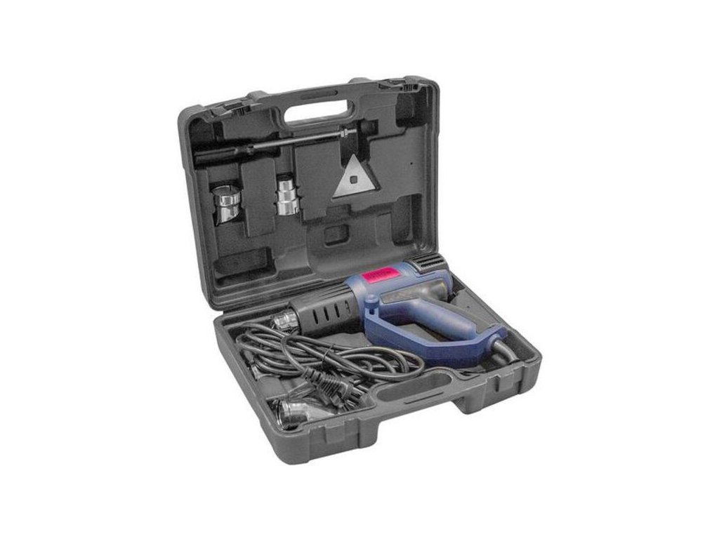 Teplovzdušná pištoľ s ergonomickou protišmykovou rukoväťou s mäkkým povrchom. Tepelne odolné plastové puzdro, veľká podporná plocha pre bezpečnú a stacionárnu prácu, 2-stupňové dúchadlo, variabilné digitálne nastavenie teploty pomocou LCD displeja. Elektronický termostat na reguláciu konštantnej teploty, poistka proti prehriatiu, široká tryska, odrazová tryska, redukčná tryska, prúdová tryska, škrabka na farbu, kufor.