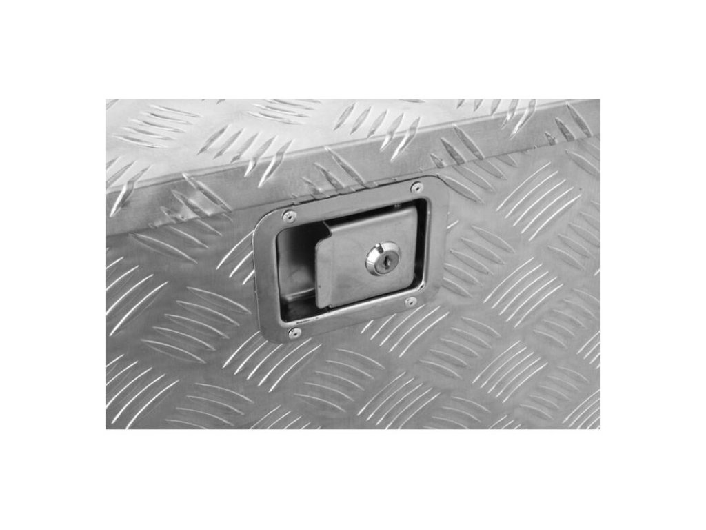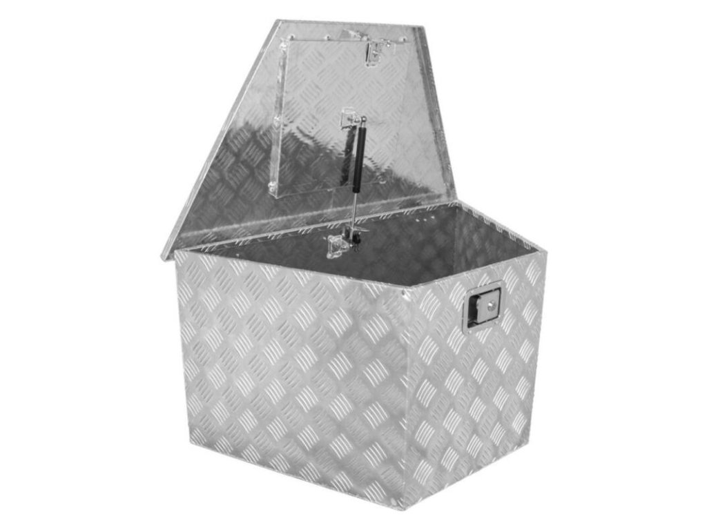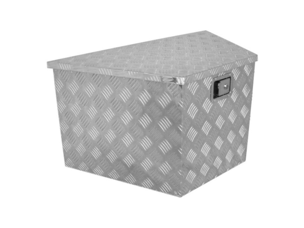 - Robustný, masívny prepravný box kompletne vyrobený z hliníkového ryhovaného plechu (plechu s oválnymi výbežkami) bol špeciálne navrhnutý pre prívesy.