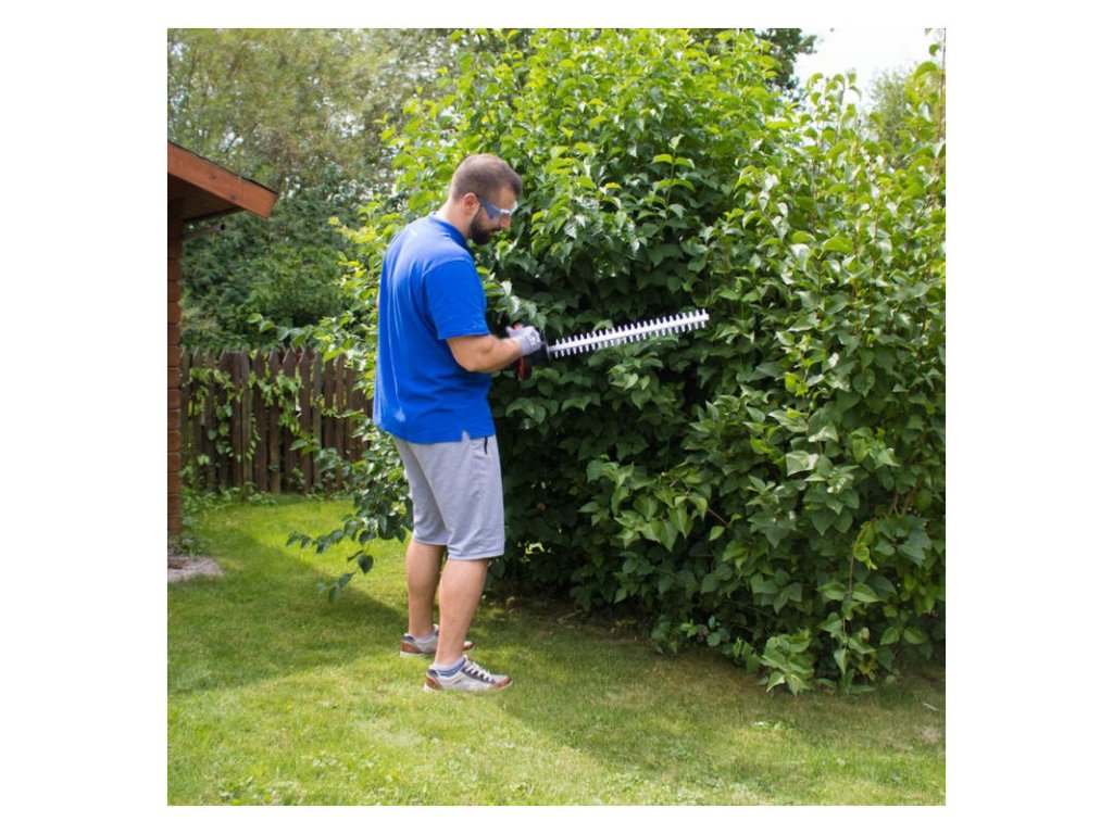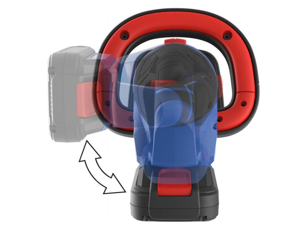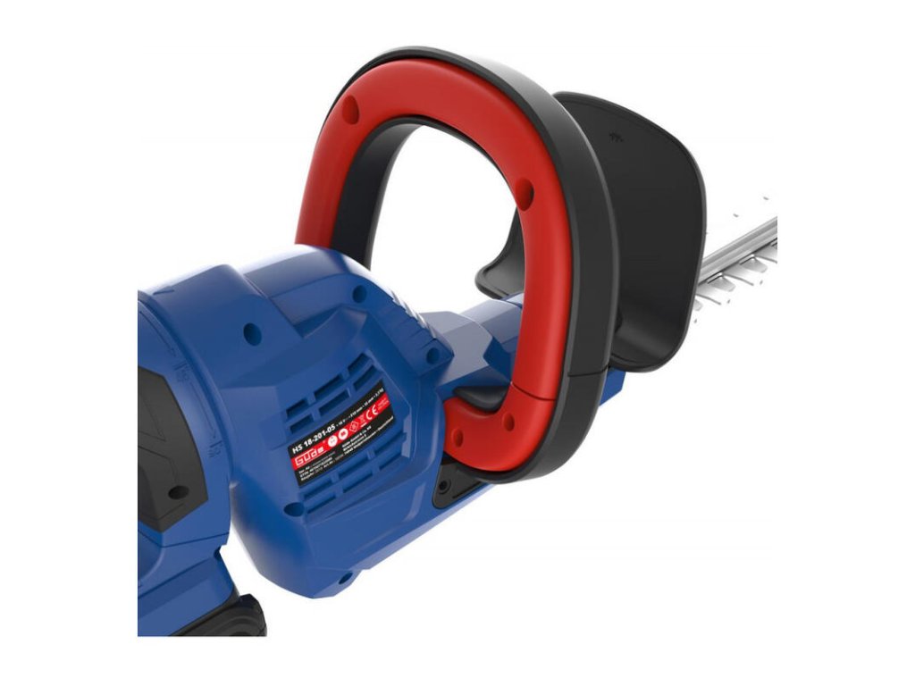 Akumulátorové nožnice na živý plot so systémom batérie 18V E³. Dvojručný bezpečnostný spínač, protibežné laserom rezané a diamantom brúsené nože, rýchle zastavenie nožov, o 180° otočná rukoväť, kovová prevodovka, hliníkový kryt nožov, ochrana pred úderom na držiaku, kryt na ruky, mäkká rukoväť. Vrátane batérie 2,0 Ah a nabíjačky 0,5 A.