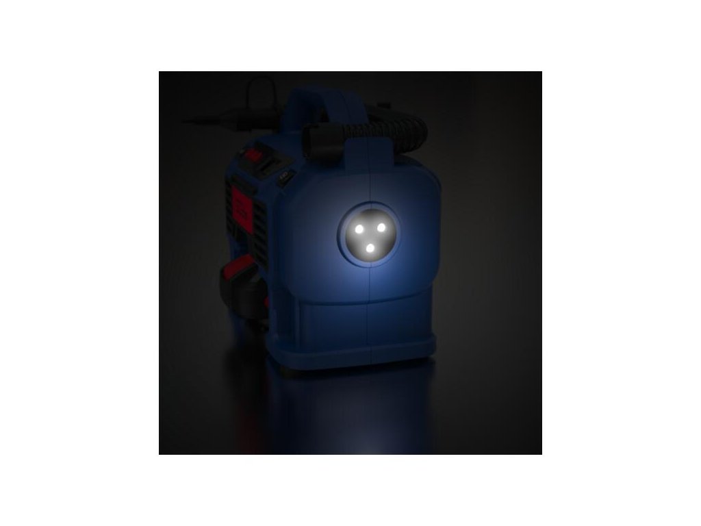 - Akumulátorový kompresor zo série akumulátorového náradia 18V E3 na plnenie pneumatík bicyklov, pneumatík osobných automobilov alebo lôpt, pumpa na hustenie a odvzdušnenie nafukovacích matracov alebo člnov.