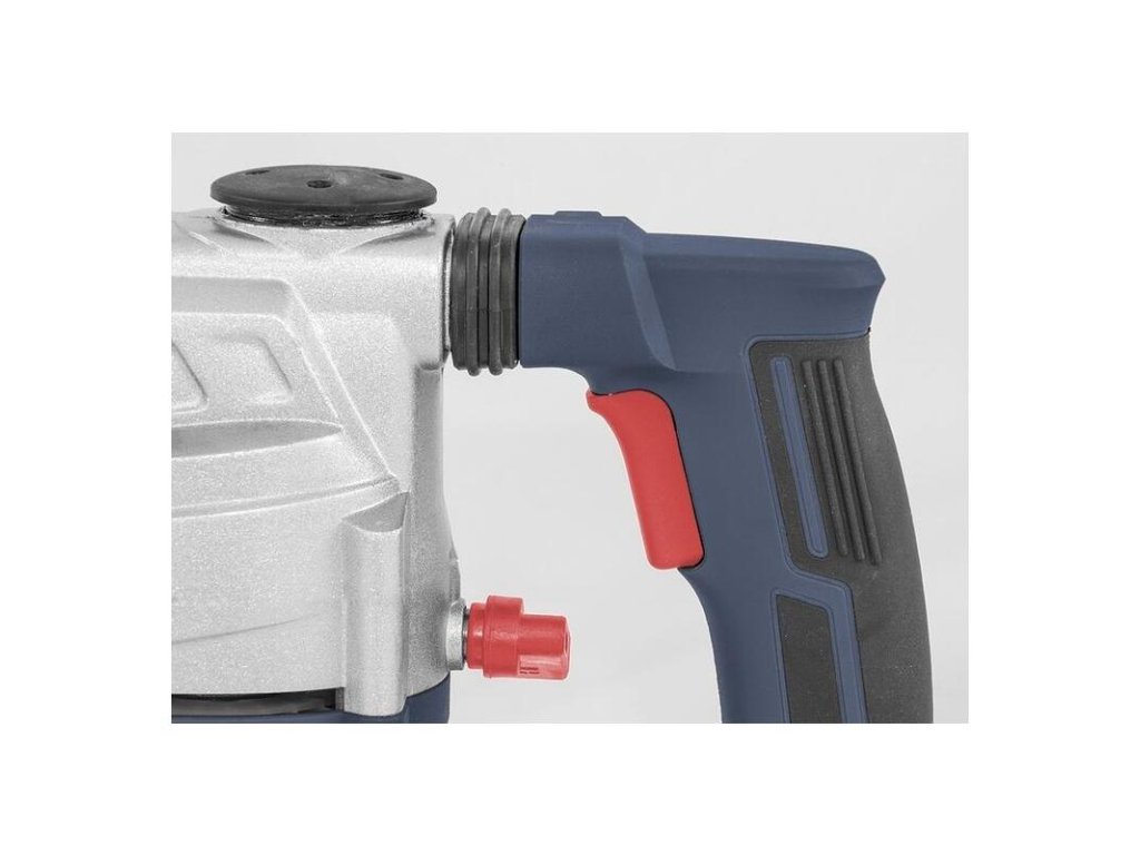 Mäkká rukoväť pre ergonomickú a bezpečnú prácu. Ergonomicky tvarovaná, odnímateľná prídavná rúčka (prispôsobená pre pravákov a ľavákov) pre zvýšenú bezpečnosť práce. Robustný, odnímateľný a nastaviteľný hĺbkový vŕtací doraz s rýchloupínaním. Rýchloupínacie skľučovadlo SDS plus na výmenu vrtákov bez náradia. Plynulá regulácia otáčok. Zastavenie otáčania pre sekacie práce. Zastavenie úderov pre vŕtanie bez príklepu. Vŕtanie, sekanie, vŕtacie kladivo, zastavenie otáčania.
