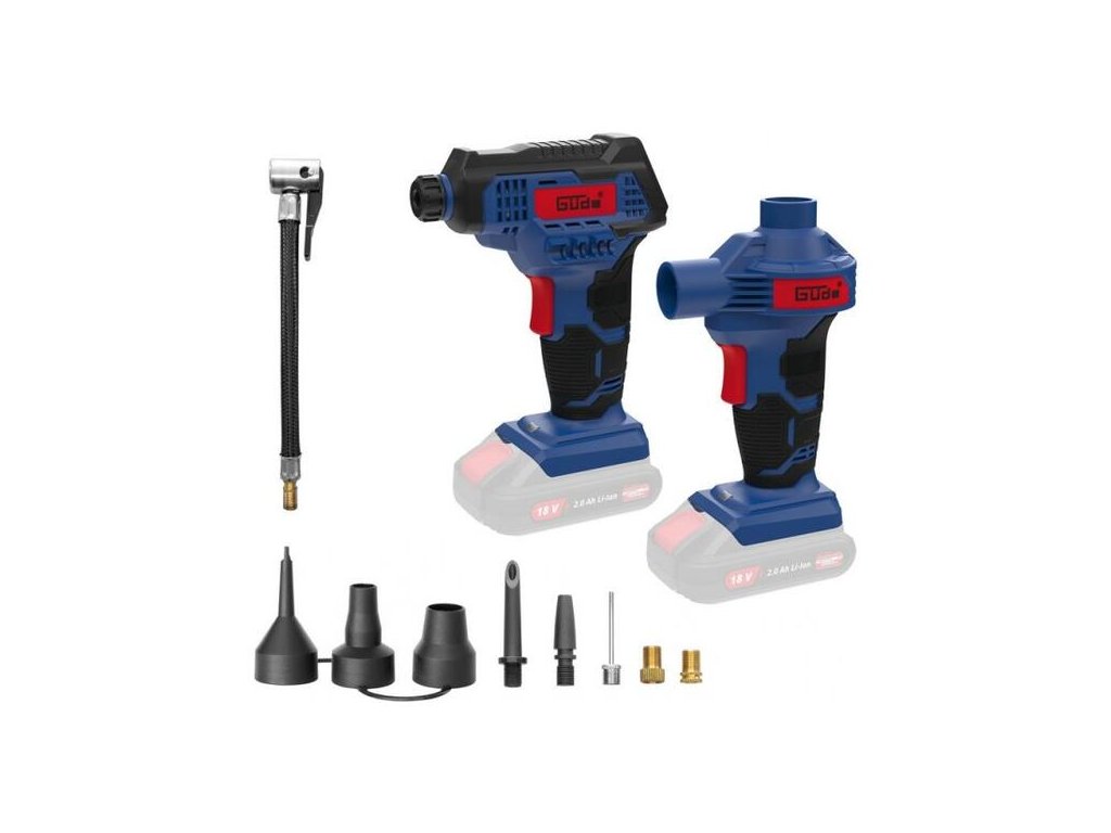 - Akumulátorový kompresor a pumpa s príslušenstvom zo série akumulátorového náradia 18V E3.