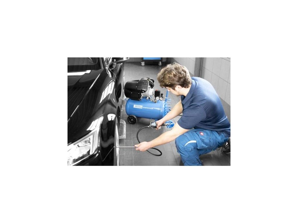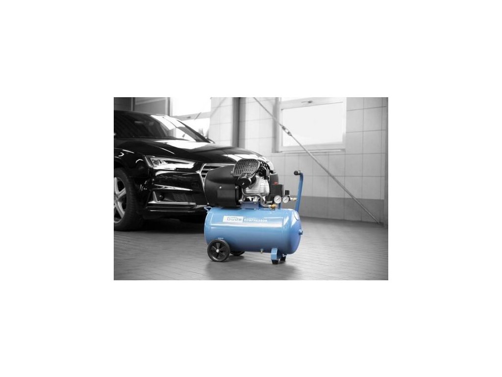 Dvojpiestový kompresor Güde 405/10/50 s príkonom 2 200 W a objemom zásobníka na stlačený vzduch 50 litrov.