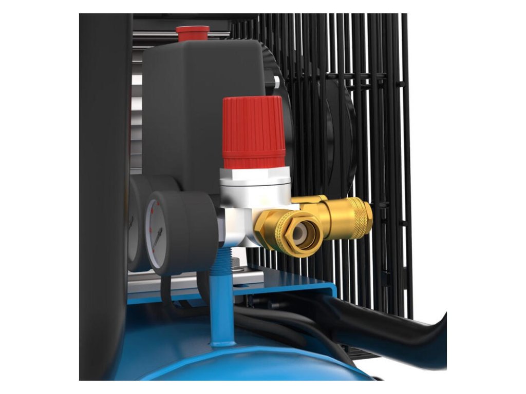 - Okrem toho má dve spojky na stlačený vzduch, ventil na redukciu pracovného tlaku a bezpečnostný ventil so spätnou klapkou.
