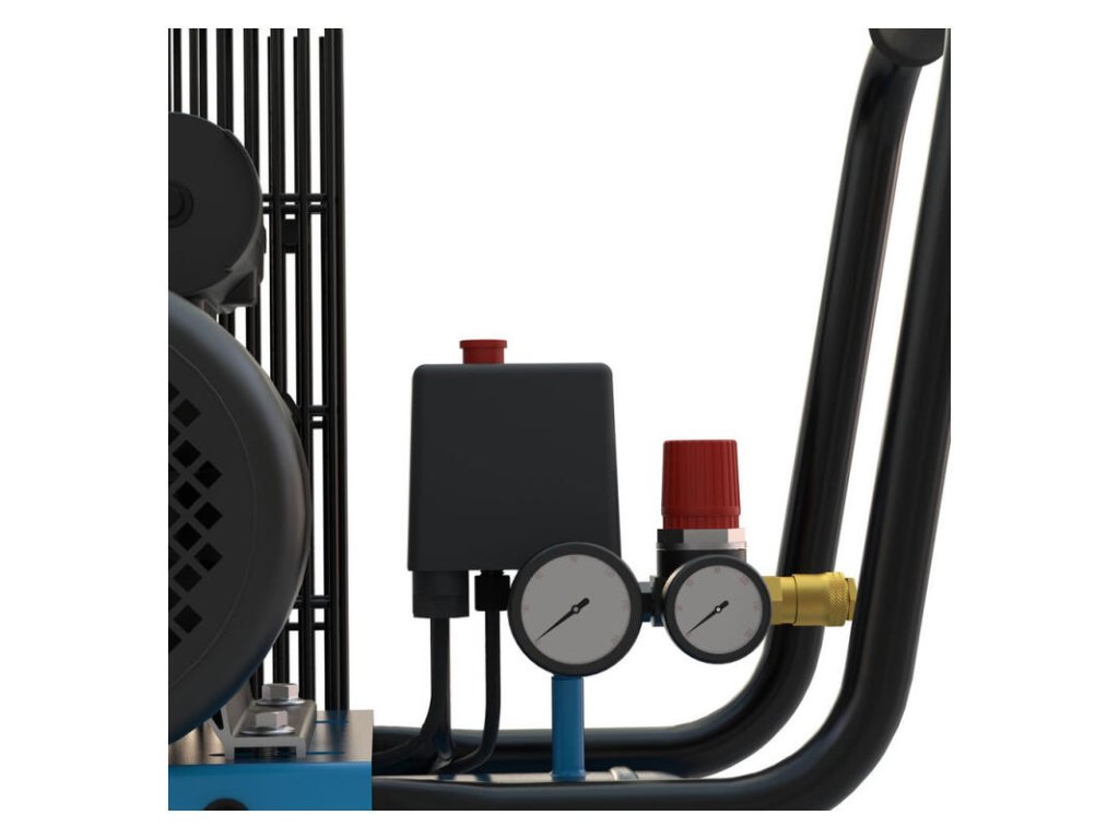 - Tlakový spínač umožňuje jednoduchú kontrolu pracovného tlaku, ktorý je monitorovaný dvoma manometrami (manometrom na meranie tlaku v nádobe a manometrom na meranie pracovného tlaku).