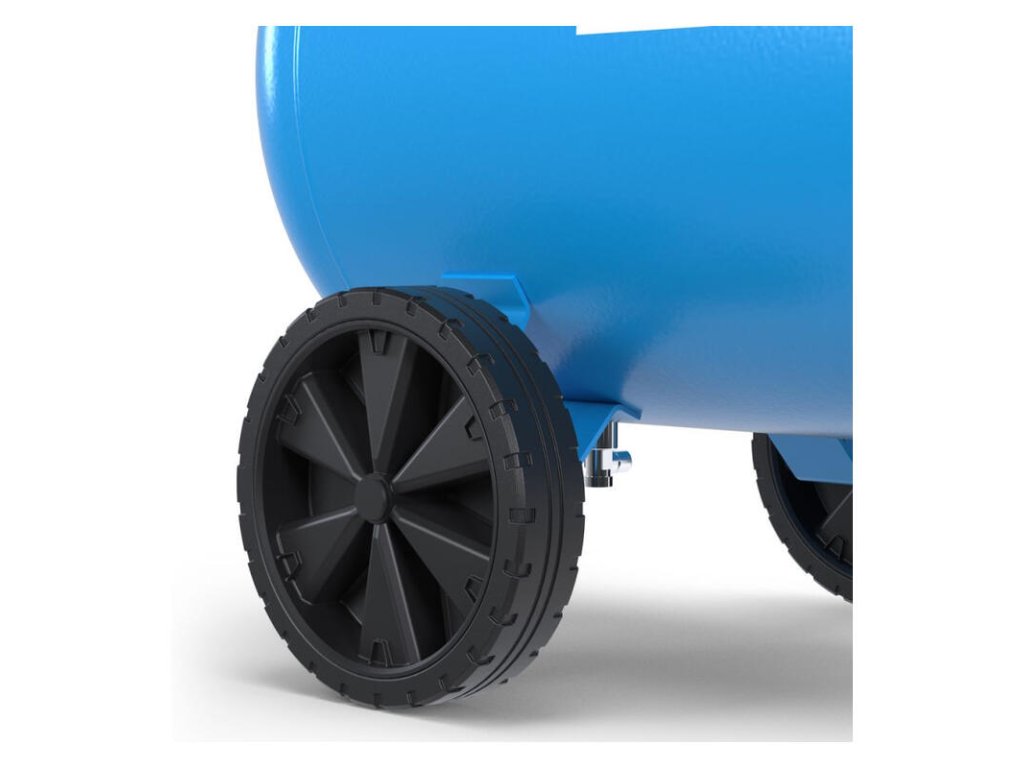 - Výkonný dvojvalcový agregát s olejovým mazaním a remeňovým pohonom so sacím výkonom 650 litrov za minútu zabezpečuje dostatok vzduchu pri požadovanom pracovnom tlaku.