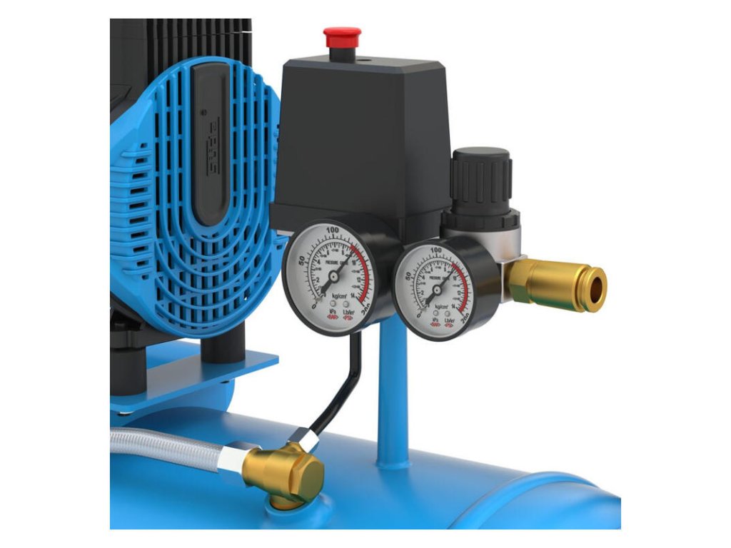 - Bezolejový a bezúdržbový dvojvalcový piestový kompresor.